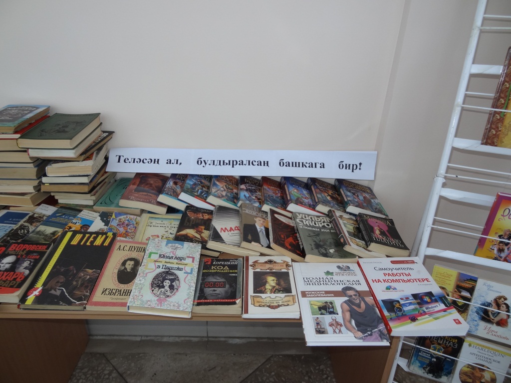 18 ноября в читальном зале центральной библиотеке состоялась акция "Буккроссинг" - перекрестный обмен книг.В мероприятии была представлена электронная презентация "Буккроссинг", "Китап турында китап". А также работала выставка "Китап.Юлдаш.Киңәшче".Дус". После, проводилась литературная викторина. В мероприятии участвовали активные читатели библиотеки и учащиеся Актанышского технологического техникума.