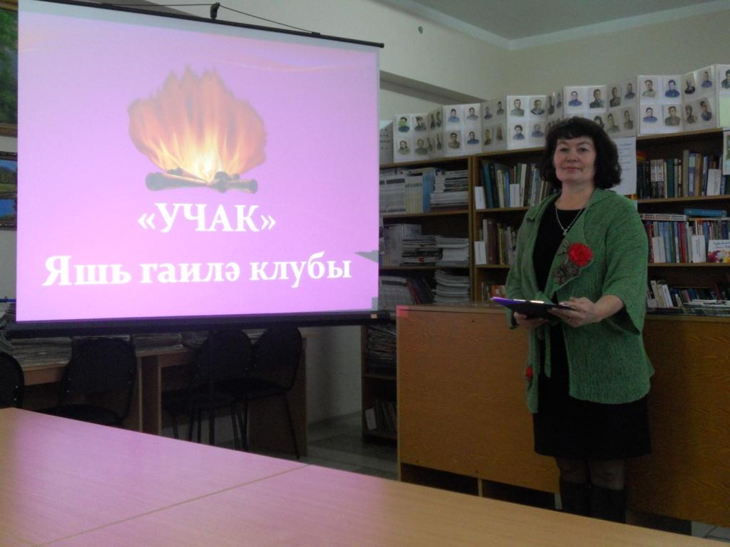 18 декабря в читальном зале центральной библиотеки проводилось первое заседание клуба молодых семьи "Учак" .В занятии была показана электронная презентация "Гаилә - бәхет ачкычы".Был проведен тест "Син кем?Каршылык чыкканда юл куя беләсеңме?". Изучана песня "Ирләргә булмый ярап".Была представлена книжная выставка и обзор на тему "Гаилә-бәхет ачкычы".А так же выступила независимый предприниматель компании "Амвей" Гульназ Фатихова.