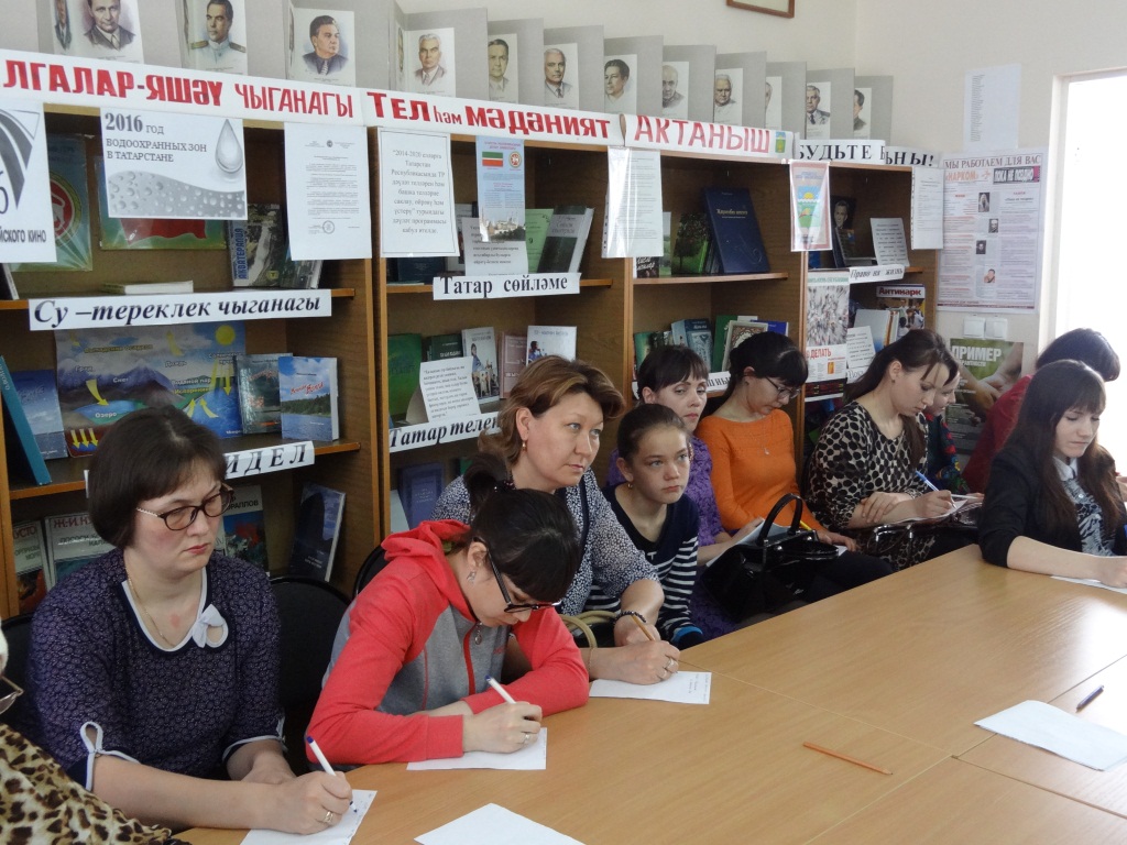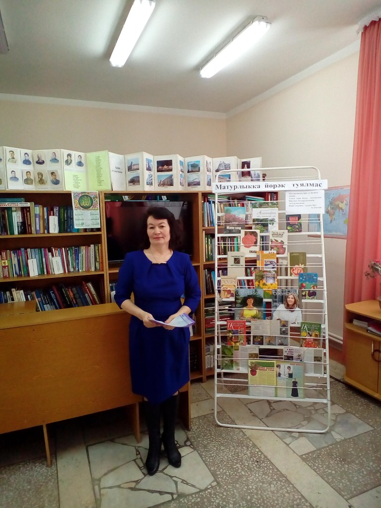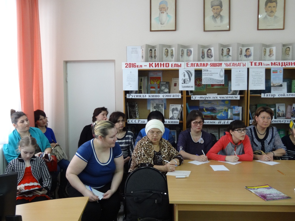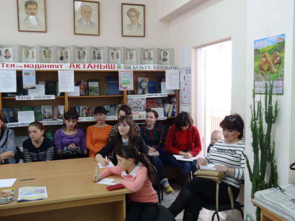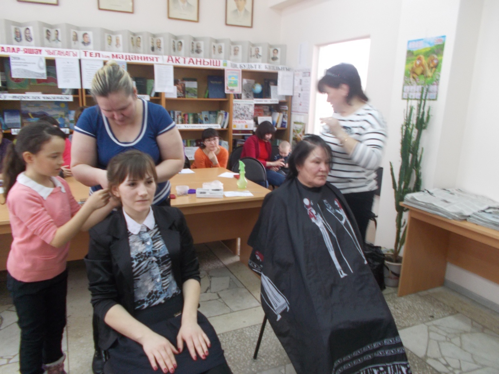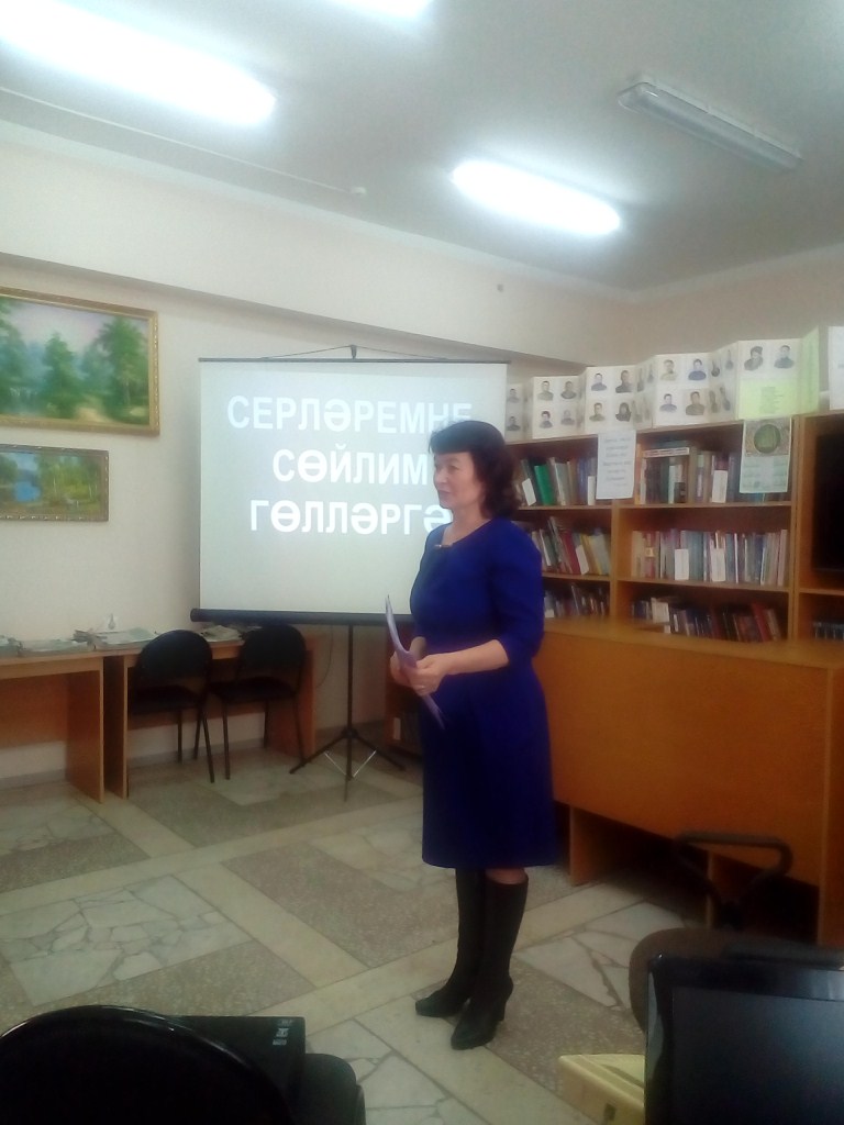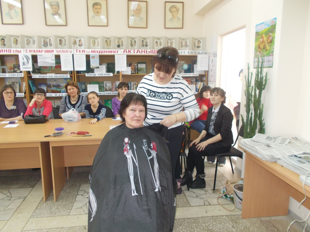 25 марта в читальном зале центральной библиотеки прошло очередное занятие клуба молодых семей "Учак" по теме "Матурлыкка йөрәк туялмас". В занятии была показана электронная презентация "Серләремне сөйлим гөлләргә". В мероприятии Василя Ахмаева Гайсиевна поделилилась опытом выращивания комнатных и садовых цветов. Проводился тест "Син нинди төс яратмыйсың?". Парикмахер Клара Закирова показала мастер-класс по женским прическам для коротких и длинных волос, сделала модную прическу "Карэ". Была представлена книжная выставка "Матурлыкка йөрәк туялмас".