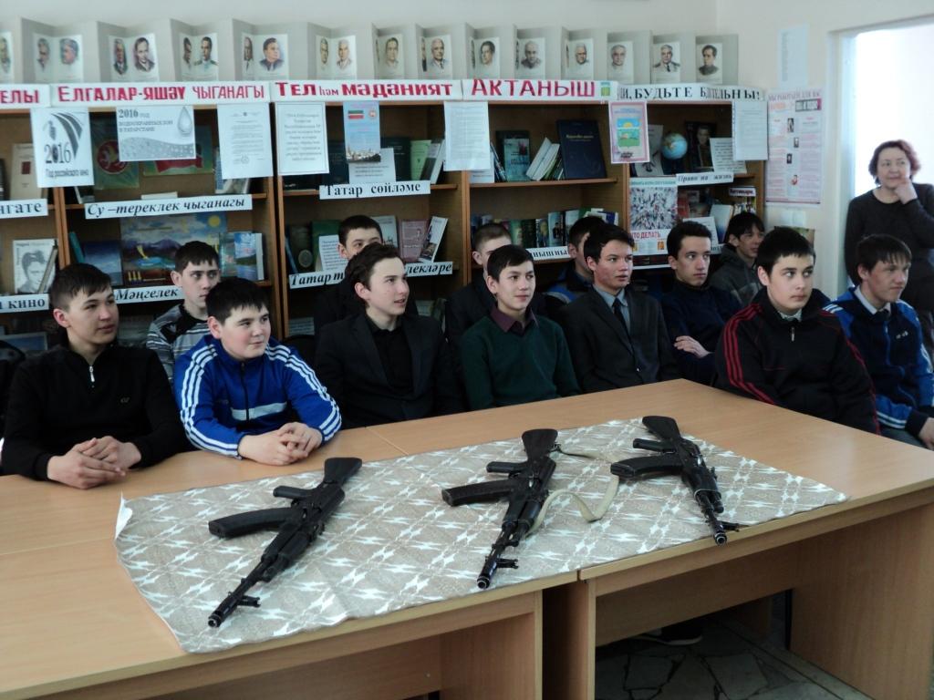 31 марта в читальном зале центральной библиотеки прошло очередное занятие патриотического клуба "Өмет" для учащихся Актанышского технологического техникума. В занятии была показана электронная презентация "Ватан терәге-ир-егет". В мероприятии участвовал отслуживший в Армий Риназ Салихов и выступили начальник отдела военного комиссариата РТ по Актанышскому району Ахметзянов Ленар Самигуллович, начальник отделения подготовки и призыва граждан на военную службу Нафиков Рузил Фатихович. Риназ Салихов показал мастер-класс по разборки и сборки АК-74. Учащиеся Актанышского технологического техникума научились усовершенствовать свои навыки по этому направлению. Так же была предоставлена книжная выставка "Батыр егет-ир күрке" и обзор на подборку книг по теме.