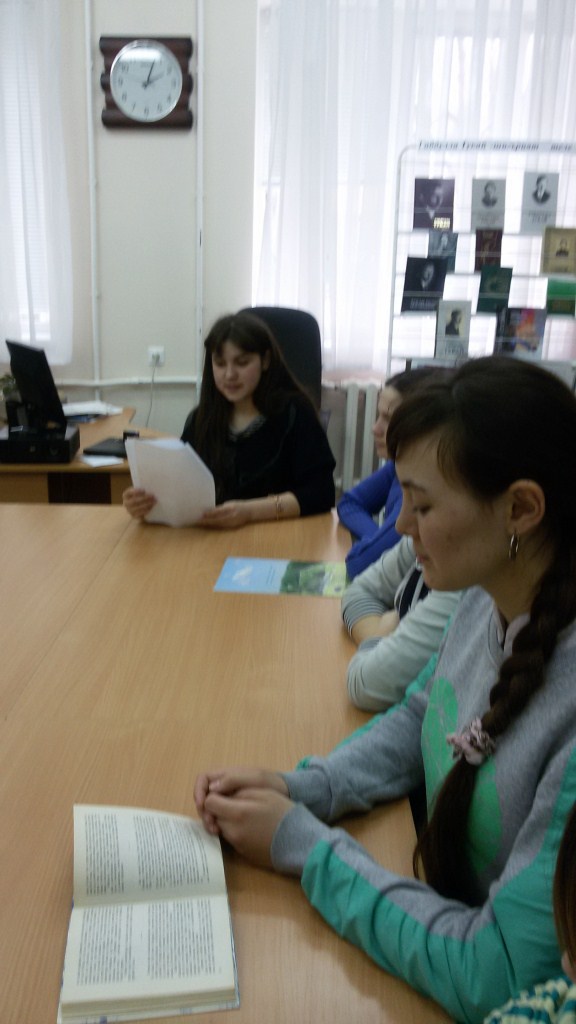 7 апреля в читальном зале центральной библиотеки клуб "Туган тел" провел с учащимися Актанышского технологического техникума очередной урок из цикла "Елгалар дөньясына сәяхәт", посвященный реке "Агидель". Ознакомились с историко-географическим названием реки Агидель. Прозвучали песни, стихи посвященные к этой реки. Прочитали отрывок из исторического дастана "Җик мәргән" и новое стихотворение местного поэта Ф. Давлетбаева про "Агидель".
