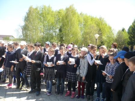 6 мая, напротив дома культуры, Актанышская центральная детская библиотека провела совместно со школьниками музыкально – тематический вечер «Җиңү килде җирне нурга күмеп...” Участниками этого вечера стали школьники 4”А” (кл. руководитель Диляра Хуббутдинова ), 3 “А” (кл. руководитель Алсу Давыдова, 2 “Г” (кл. руководитель Захина Долгова) классы Актанышской средней школы №1.. Вечер начался театрализованной инсценировкой. Ведущая вечера Хамидуллина Лилия рассказала школьникам о войне, планах гитлеровцев и о патриотизме нашего советского народа. Ребята с душой исполняли песни на военные темы, читали стихи, которые не могли никого оставить равнодушными. Особенно всем понравилось стихотворение «Вәхшәт» в исполнении Алсу Амирхановой. Потом провели с детьми викторину на тему “Что ты знаешь о Великой Отечественной войне?”. Оказалось, дети хорошо знают нашу историю, историю войны. Они также отгадали загадки. В конце мероприятия каждому классу дали задание, изобразить при помощи пантомимы текст полученной шифровки. Все три класса успешно справились с этим заданием. Организовали книжную выставку“Читай книгу про войну” и провели обзор. Мероприятие закончилось исполнением песни “День победы”.