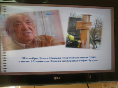 Д. Н. Кугультинов – ветеран Великой Отечественной войны, автор более 80 книг, герой Социалистического труда, лауреат Государственных премий СССР и России. Благодаря прекрасным переводам на русский язык, Давид Кугультинов признан как выдающийся поэт современности не только в нашей стране, но и за рубежом. Д. Кугультинов отразил в своем творчестве коренные моменты эпохи. Его глубоко народные произведения – вклад поэта в золотой фонд многонациональной российской литературы.