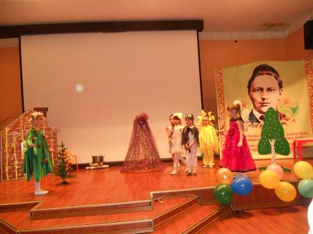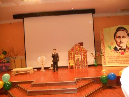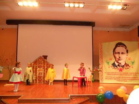 Вечер открыл танцевальный коллектив из детского сада «Алтынчач» – самодеятельные артисты исполнили татарский танец. Далее праздничный вечер продолжался, переплетаясь с выступлениями организаторов вечера и участников. Воспитанники детских садов, школьники, взрослые читали стихи Тукая, показали инсценировки, исполнили песни. Все участники с высоким мастерством справились со своими ролями.