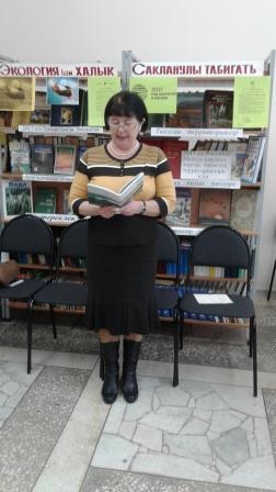 Центральная библиотека совместно с детской библиотекой, в парке культуры и в лесу “Бүляк”провела оздоровительный вечер, посвящённый году экологии, по теме “Агачларда биоэнергетика” и “Һәркемнең үз агачы”. Были показаны электронные презентации и организована книжная выставка. Участники экологического вечера отвечали на вопросы викторины. Победителям были вручены памятные подарки.