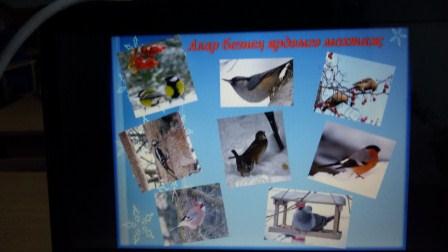 Очрашуның төп сәбәбе, безнең якларда кышлаучы кошлар белән танышу, кышкы суыклардан нәни дусларыбызны саклап калу юлларын эзләү иде. “Кыш көне кошлар” исемле презентация ярдәмендә, аларның яшәү һәм туклану шартлары белән таныштырдык. Кошларга кыш көне җимлекләр ясарга кирәклеге турында аңлатылды. Җимлекне ясап кына калмаска, ә аны даими карап, чистартып, аларга җим салып торырга кирәклеген төшендердек. Укучылар белән бергә, кошлар турында шагыйрьләребез иҗат иткән шигырьләрне укыдык, табышмакларга, викторина сорауларына җаваплар эзләдек. Ә соңыннан, балаларның, әти-әниләре белән берлектә ясаган җимлекләрен карап уздык.