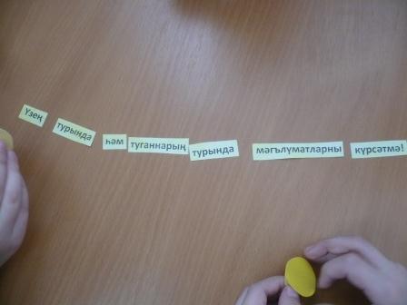 Танып-белү сәгате бик күңелле башланып китте. Укучылар төрле төстәге фишкалар ярдәмендә өч төркемгә бүленделәр һәм бирелгән сүзләрдән җөмләләр төзеп, бүгенге чарабызның темасын ачыкладылар. “Исәнләшү” уены аша янәшәдәге дуслар һәм интернет аша танышкан дуслар арасындагы аерманы ачыкларга өйрәнделәр. Балалар өчен булдырылган “Бала” һәм “Вебландия” сайтларына күзәтү ясалды. Чара, “Фиксиклар белән куркынычсыз Интернетка сәяхәт” презентациясе белән үрелеп барды. Укучылар Фиксикларның Интернет турында әйткән файдалы киңәшләрен тыңладылар. Соңыннан куркынычсыз интернет буенча алган белемнәр буенча фикер алышу булды. Һәр укучыга “Интернеттан дөрес файдалану буенча киңәшләр” исемле буклетлар өләшенде. Чарада 22 укучы катнашты.
