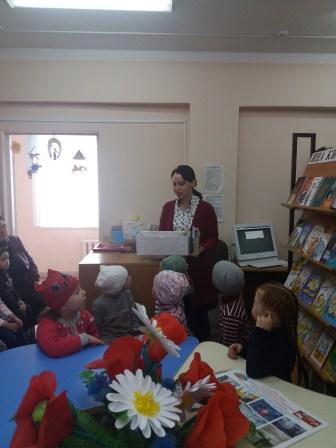 Балалар төрле формадагы китапларны, китапханә алдыра торган балалар журналларын бик яратып карадылар. Китапханә белән танышканнан соң бергәләп “Теремкәй” һәм “Куян кызы” әкиятләре буенча төшерелгән мультфильмнар карап үттек. Иң соңыннан барлык нәниләр дә яратып уйный торган “Түбәтәй” уенын уйнап балалар белән саубуллаштык. Әлеге очрашу нәниләр күңелендә онытылмас тәэсирләр калдырды.