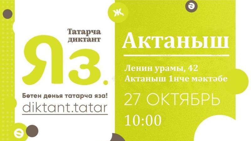 27 октябрьдә “Татарча диктант” язу Актанышның 1 нче мәктәбендә 10.00 сәгатьтә башлана, рәхим итегез!
