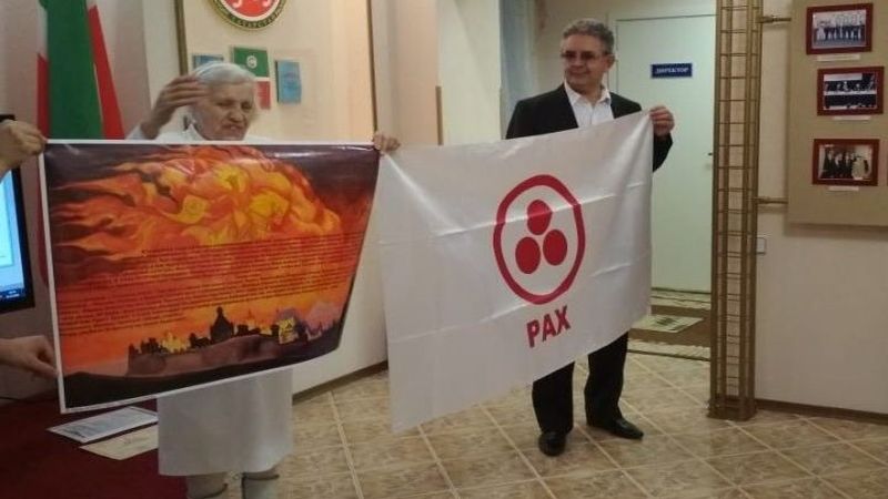 Тынычлык байрагын Татарстан мәдәният министры урынбасары Светлана Персовага Тынычлык байрагы халыкара комитеты Тулы вәкаләтле вәкиле Тамара Макаренко тапшырган. Аның башкалага сәфәре Рерих пактын имзалау көненә багышланган (15 апрель, 1935 ел) һәм ул “Россиядә БМО: 70 ел” халыкара программасы кысаларында уза.