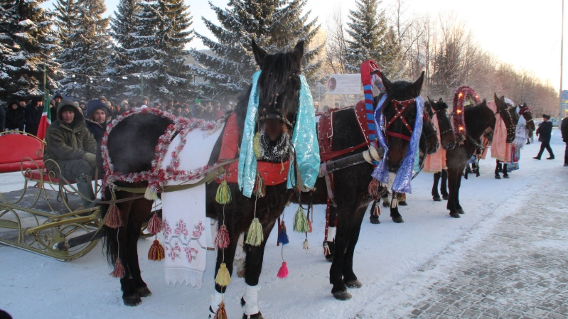 Матур итеп бизәлгән атлар район хакимияте бинасы каршына килеп туктады. Бәйрәмгә җыелган халык быел да тройкалар парадын яратып карады. Теләге булганнарга атларга утырып йөрү мөмкинлеге дә бар иде.