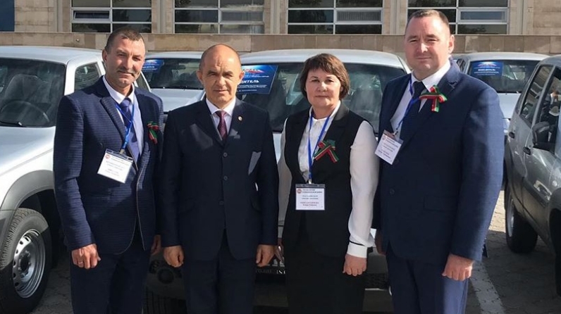 Татарстан Республикасы Президенты Рөстәм Миңнеханов Актаныш муниципаль районының Актанышбаш, Такталачык, Мәсәде авыл җирлекләре башлыкларына яңа "Шевроле Нива" автомобильләре ачкычларын тапшырды.