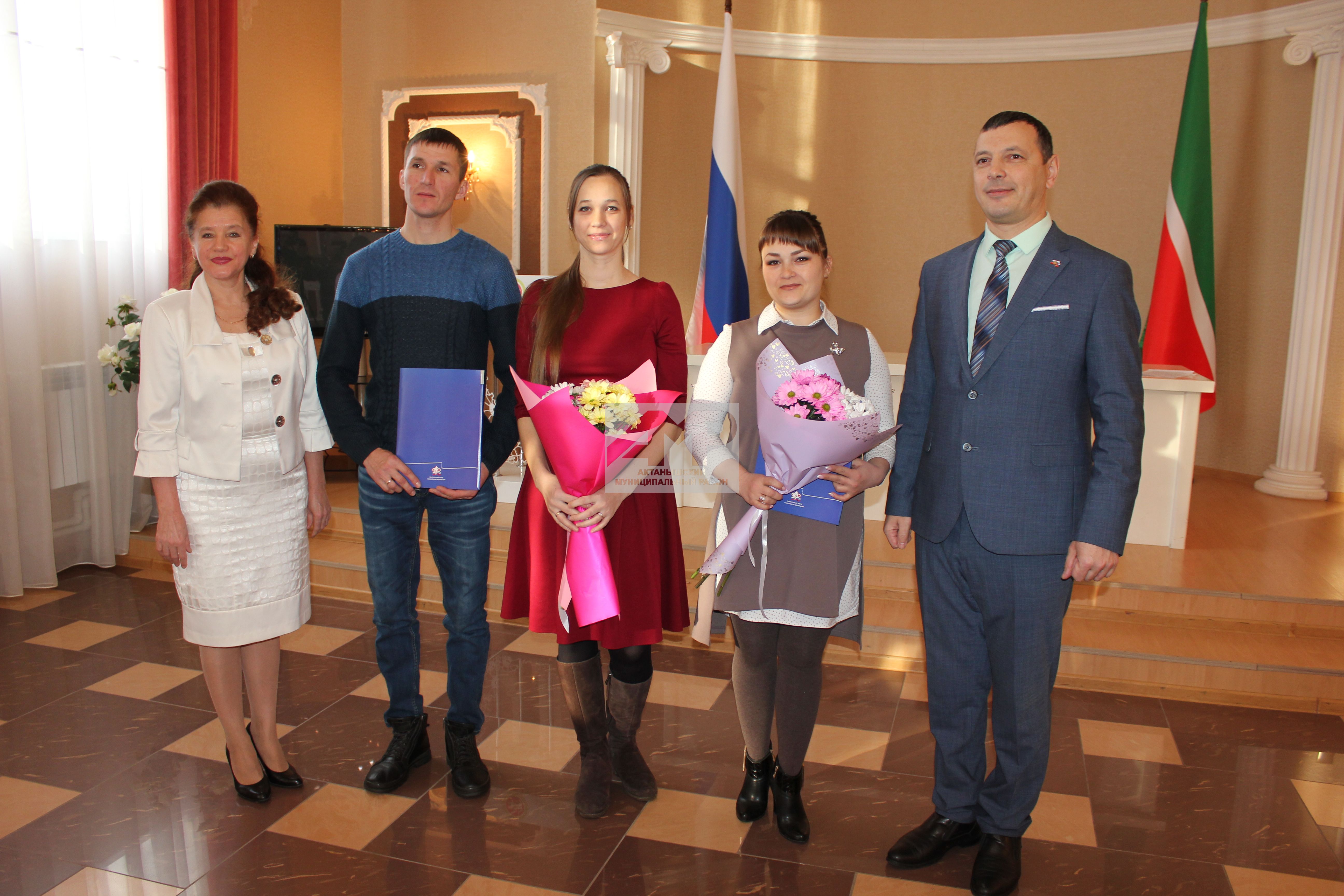 ЗАГС бүлегендә оештырылган бәйрәм чарасында мондый бүләккә Шакировлар һәм Бикмөхәммәтовлар гаиләләре ия булды. Бәхетле парларга район җитәкчелеге исеменнән җылы теләкләрне район башкарма комитеты җитәкчесенең социаль мәсьәләләр буенча урынбасары Ләйсән Нурлыева ирештерде.