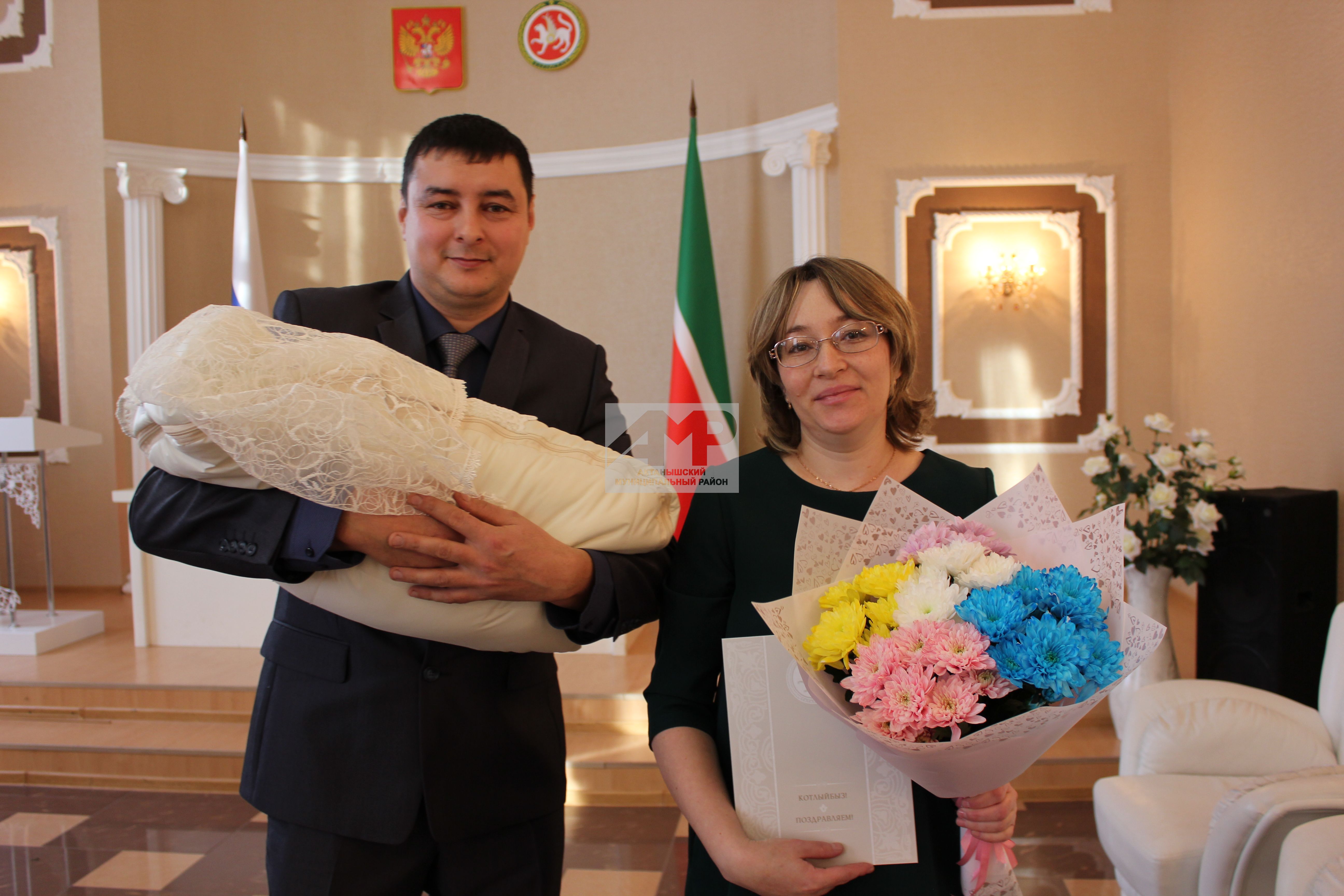 Актаныш районы ЗАГС булегендә бүген, 21 ноябрь көнне, 180 нче баланы теркәү тантанасы уткәрелде. Бәхетле пар - Луиза Шәйхенур кызы һәм Алфир Рәдиф улы Рәвефевлар - мәхәббәт җимешләренә Аиза исеме куштылар.