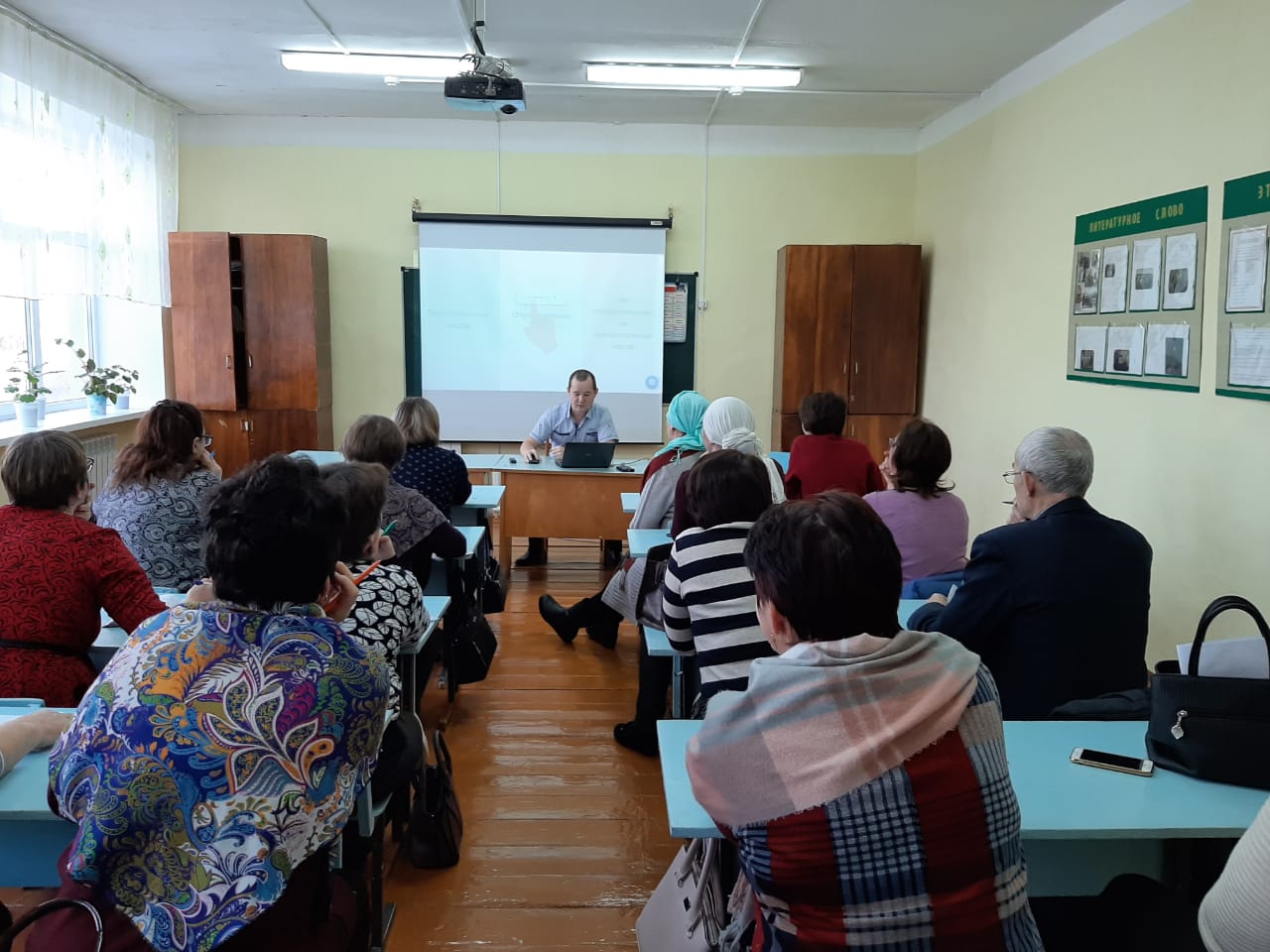 Укучылар мәсьәлә чишкәндә, математика укытучылары түгәрәк өстәл янында информацион технологияләрне уку-укыту эшчәнлегенә кертү буенча тәҗрибә уртаклаштылар.