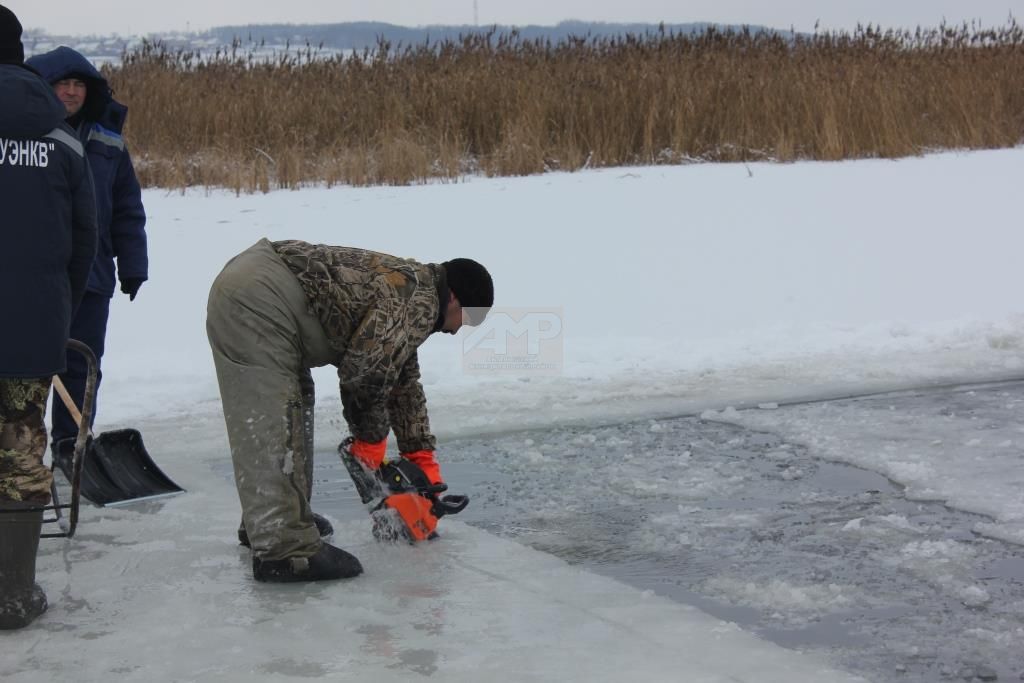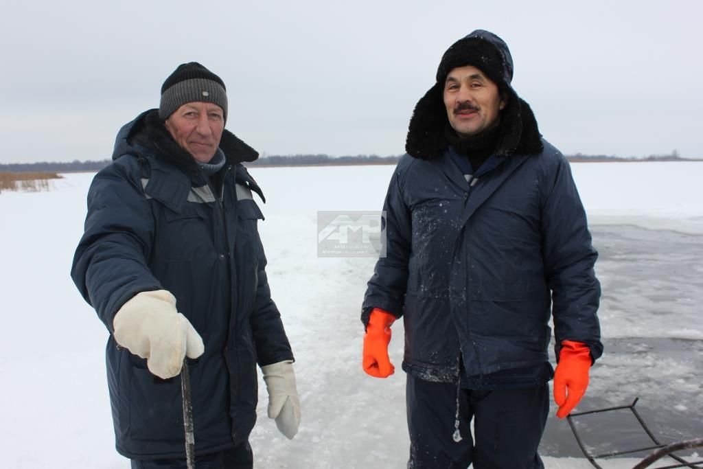- Бозның калынлыгы 30-35 сантиметр. Бозны бензин пычкылары белән кисәбез, әзер бозны махсус җайланмалар белән алабыз. Беренче ел гына эшләмибез бит, шулай булгач саклык чаралары да, эш техникасы да таныш, - ди, егетләр үзләре.