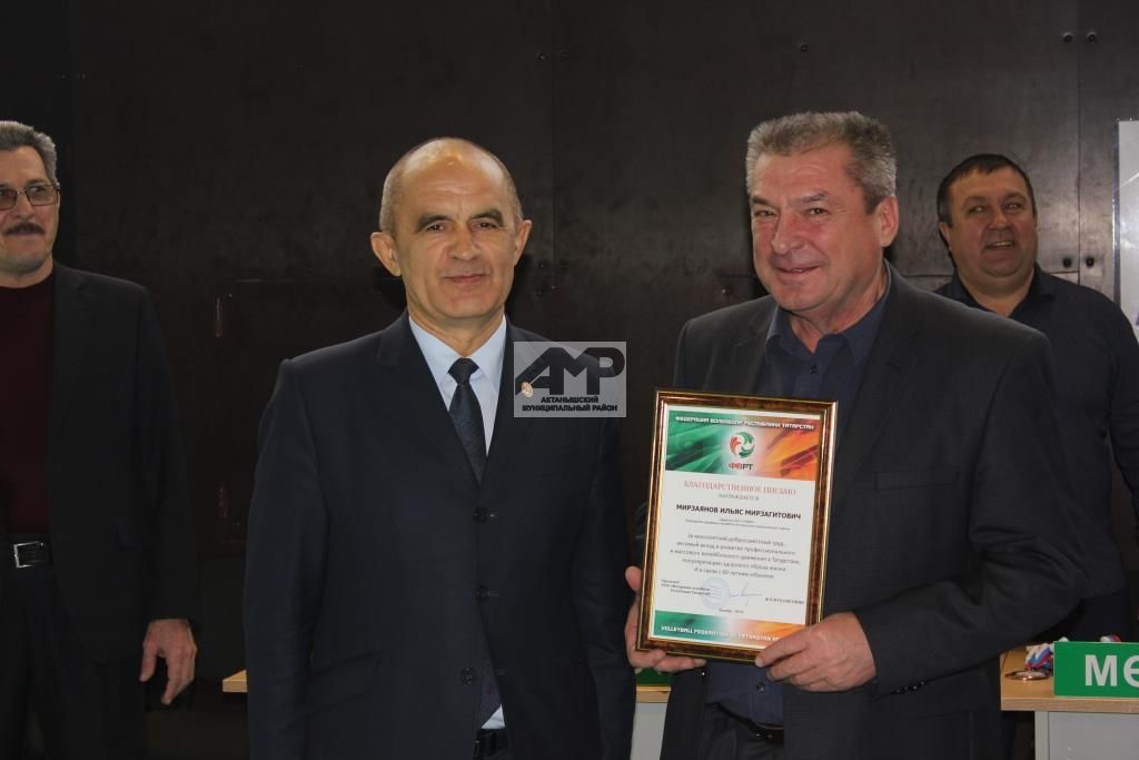 “Урал Лигасы”ның финал этабы ачылышы тантанасында районның волейбол федерациясе рәисе Ильяс Мирзаянов һәм Актанышның волейбол командасы капитаны Ренат Газетдинов ТР Дәүләт Советы рәисе, Волейбол федерациясе җитәкчесе Фәрид Мөхәммәтшинның Рәхмәт хатына лаек булдылар.