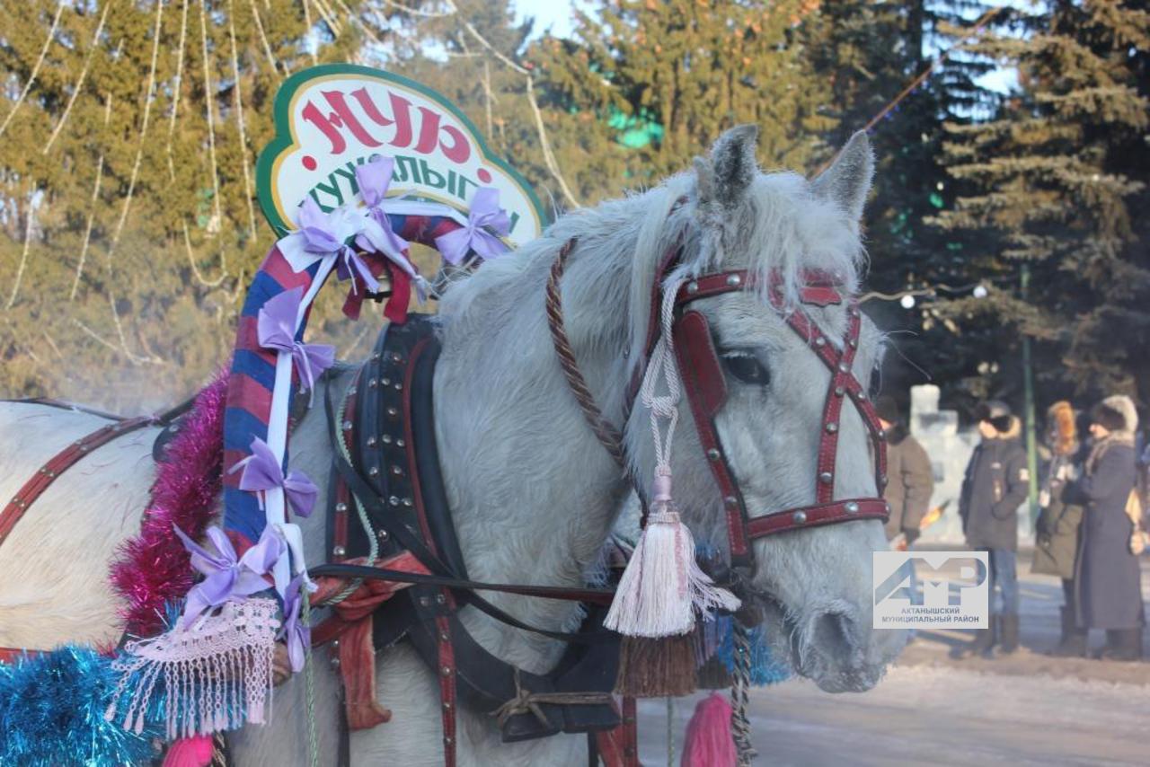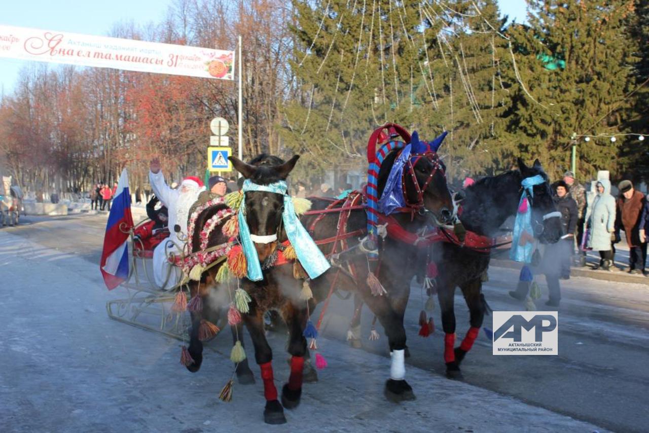 Быел да Актаныштагы Яңа ел бәйрәменә җигүле атлар парады үзгә бер төсмер өстәде. Хәер, алар ел саен бәйрәм мәйданына керә – хезмәтле халык икәнебезнең бер күрсәткече кебек ул атлар. Хуҗалыкларның тройкалары, урамнарны әйләнгәннән соң, хакимият каршындагы мәйданны урадылар