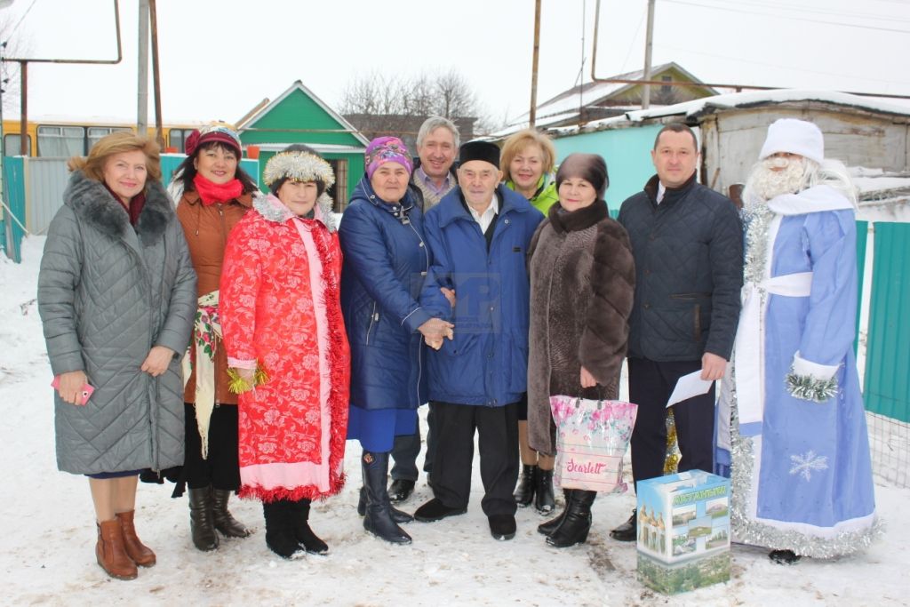 Мәсәде авыл җирлеге Галимҗан агага үзгә бүләк әзерләгән булып чыкты: юбилярны җирлек башлыгы Флүрә Риф кызы белән беррәттән Кыш бабай һәм Кар кызы да тәбрик итте.