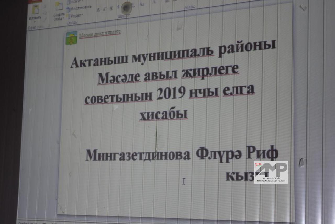 Башлыкның чыгышы үз эченә 2019 елда башкарылган шактый эшләрне сыйдырган булып чыкты. Үзләштерелгән капиталь салым күләме, үзара салымга хисап, аның бәрабәренә башкарылган эшләр, җирлектә оештырылган мәдәни чаралар, төрле советларның утырышлары, эш урыннарын биләп торучы хезмәткәрләр, авыл халкының составы, сыер-кәҗә малы тотучыларга кайтарылган субсидияләр, машина-трактор саны, терлекнең исәбе, эчке контрольдә торган авыр гаиләләр– кыскасы, тулы бер хисап елы.