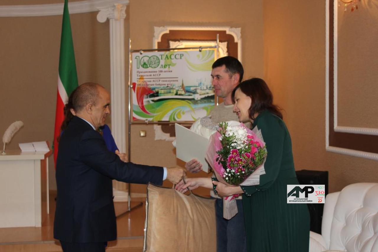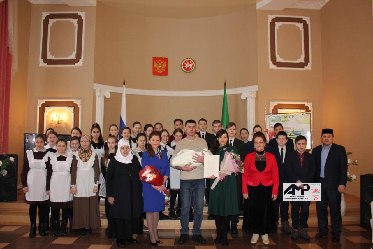 Район башлыгы бәхетле гаиләгә Солтанның туу турындагы таныклыгы белән беррәттән Татарстан Президентының шәхси котлау хатын да тапшырды.