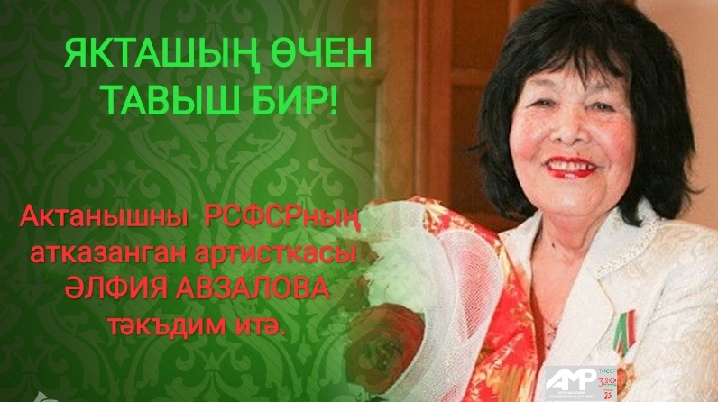 Актаныш районын Татарстан АССР-ның – халык, РСФСР атказанган артисткасы, Габдулла Тукай исемендәге Дәүләт бүләге лауреаты Әлфия Авзалова тәкъдим итә.Шул нисбәттән райондашларыбызны үзебезнең атаклы якташыбызны зурларга чакырабыз.