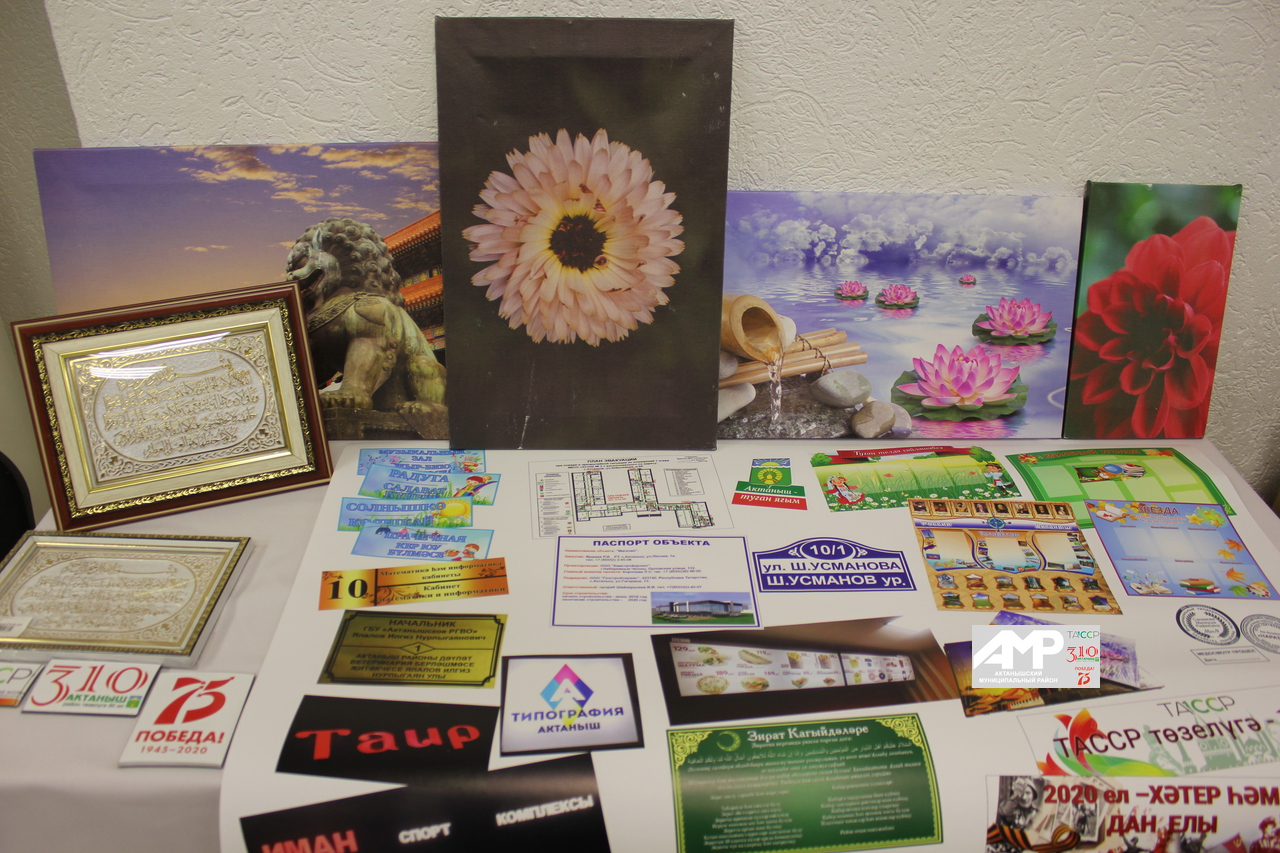 Күргәзмәдә шулай ук райондашларыбызга күпләп реклама продукциясе тәкъдим иткән яшь үзмәшгуль Илһам Вәҗиев тә катнашты. Ул җитештергән продукциягә районда ихтыяҗ, чыннан да, зур. Урам исемнәрен, йорт саннарын яздыру соңгы арада аеруча популярга әверелгән.
