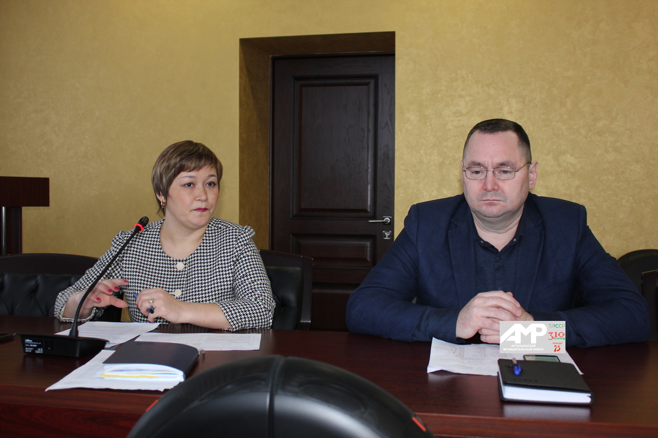 Ләйсән Фоат кызы залда утыручыларны районның әлеге программага нигезләнеп алып барган эшчәнлеге белән таныштырды. Бүгенге көндә районның барлык норматив хокукый актлары (статуслы документлар – уставтан башлап, карар һәм боерыклар) ике телдә алып барыла. Шулай ук халыктан кергән мөрәҗәгатьләргә дә, аларның кайсы телдә язылуына карап, шул телдә җавап бирелә. Ягъни дәүләт телләре турындагы законның үтәлеше бу очракта 100 % дәрәҗәсендә, районның рәсми сайты эшчәнлеге дә таләпләргә туры килә.