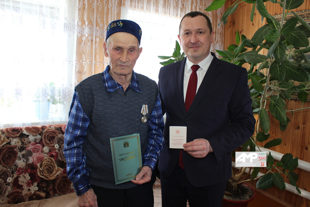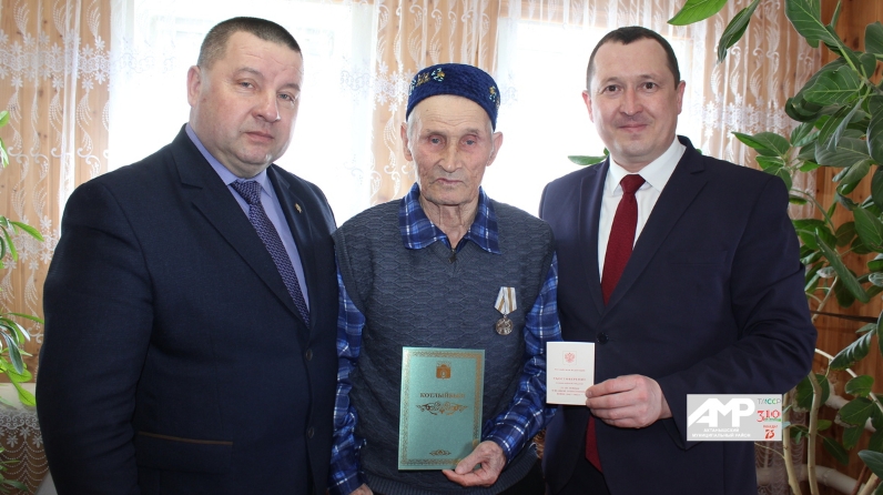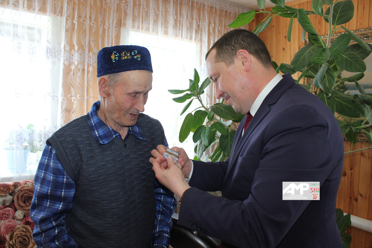 Альберт Индәриф улы Мирзариф Мирзануровның күкрәгенә Җиңүнең 75 еллыгы уңаеннан булдырылган медальне беркетеп, намуслы хезмәте өчен рәхмәт сүзләрен юллады: