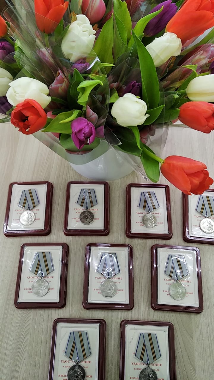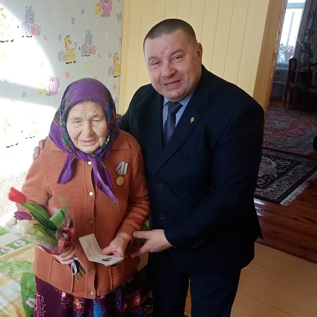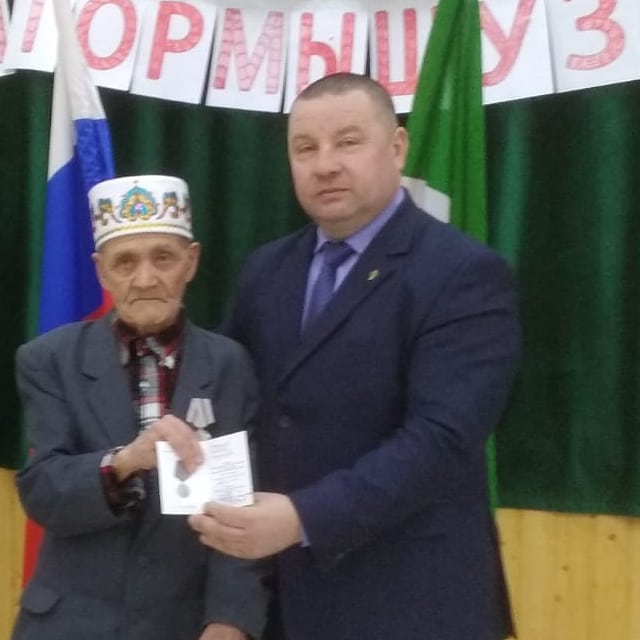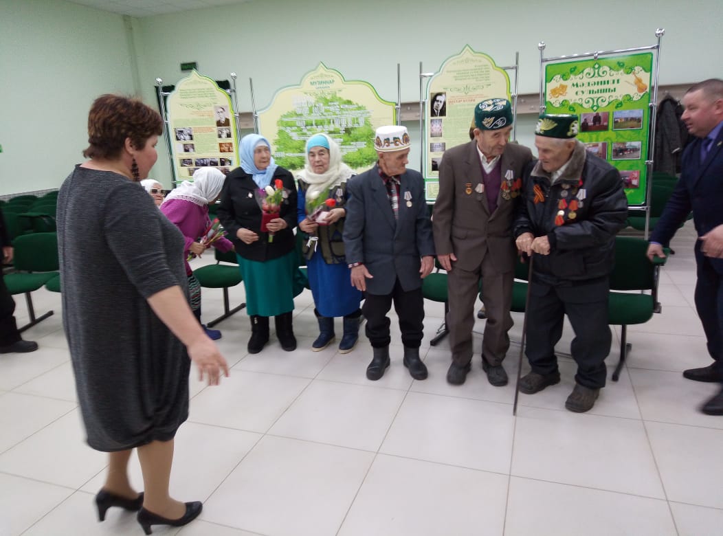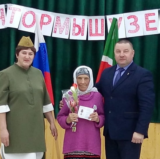 Әлеге чарада алты тыл ветеранын юбилей медальләре белән зурладылар. Юбилей медальләрен ветераннар зур горурлык хисе белән кабул итте. Хөрмәткә лаек затларга үзенең җылы теләкләрен авыл җирлеге башлыгы Марс Мансуров ирештерде.