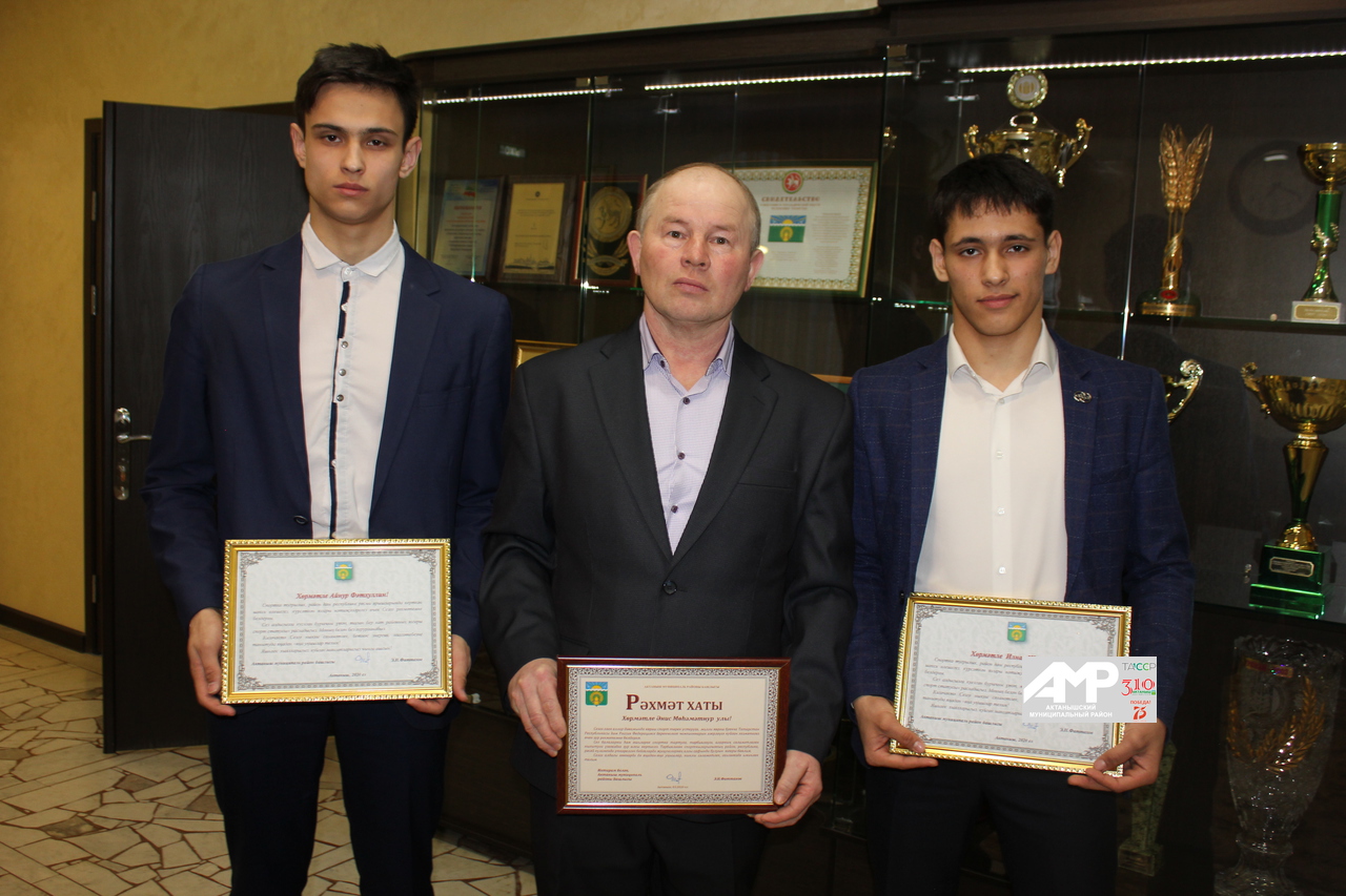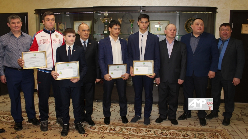 Очрашу ахырында Россия чемпионнарын Энгель Фәттахов Рәхмәт хатлары белән хөрмәтләде һәм “алтын” буынга килгән алмашка районның көрәш федерациясе белән берлектә булдырылган конвертлар тапшырылды.