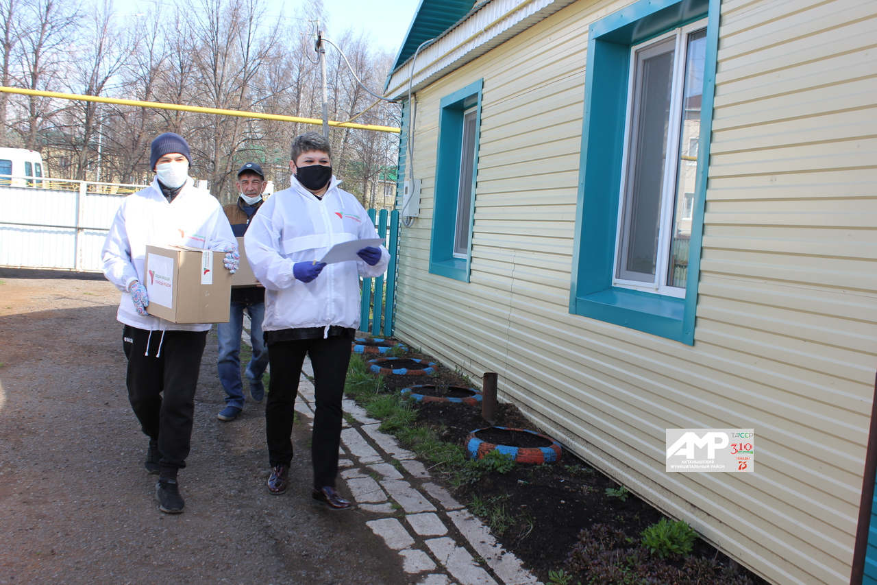 Актаныш авылының үзендә әлеге җыелма 189 гаиләгә тапшырылачак. Волонтерлар ярдәме белән кичә аларның 17се үз ияләрен тапты. Бүген исә әлеге мәрхәмәтле эш район үзәгендә иртәнге сәгатьләрдән үк дәвам итте. Актаныш районы Башкарма комитетының яшьләр эшләре, спорт һәм туризм бүлеге җитәкчесе урынбасары Назил Латыйпов һәм Актаныш авыл Советы хезмәткәре Илиза Бакирова 65 яшьтән өлкәнрәк кешеләргә республика күчтәнәчләрен тарата.