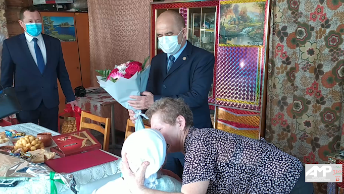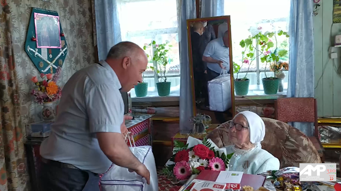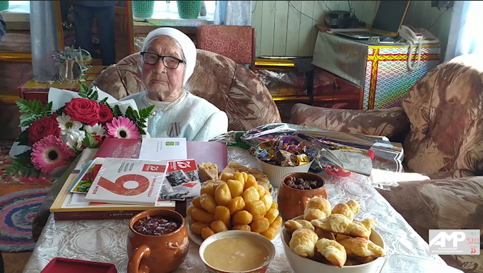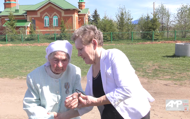 Пучы авыл җирлеге башлыгы Нияз Нуретдинов та авылның иң өлкән кешесен хөрмәтләп туган көненә килгән. Авыл хуҗасы Ак әбигә җылы юрган бүләк итте.