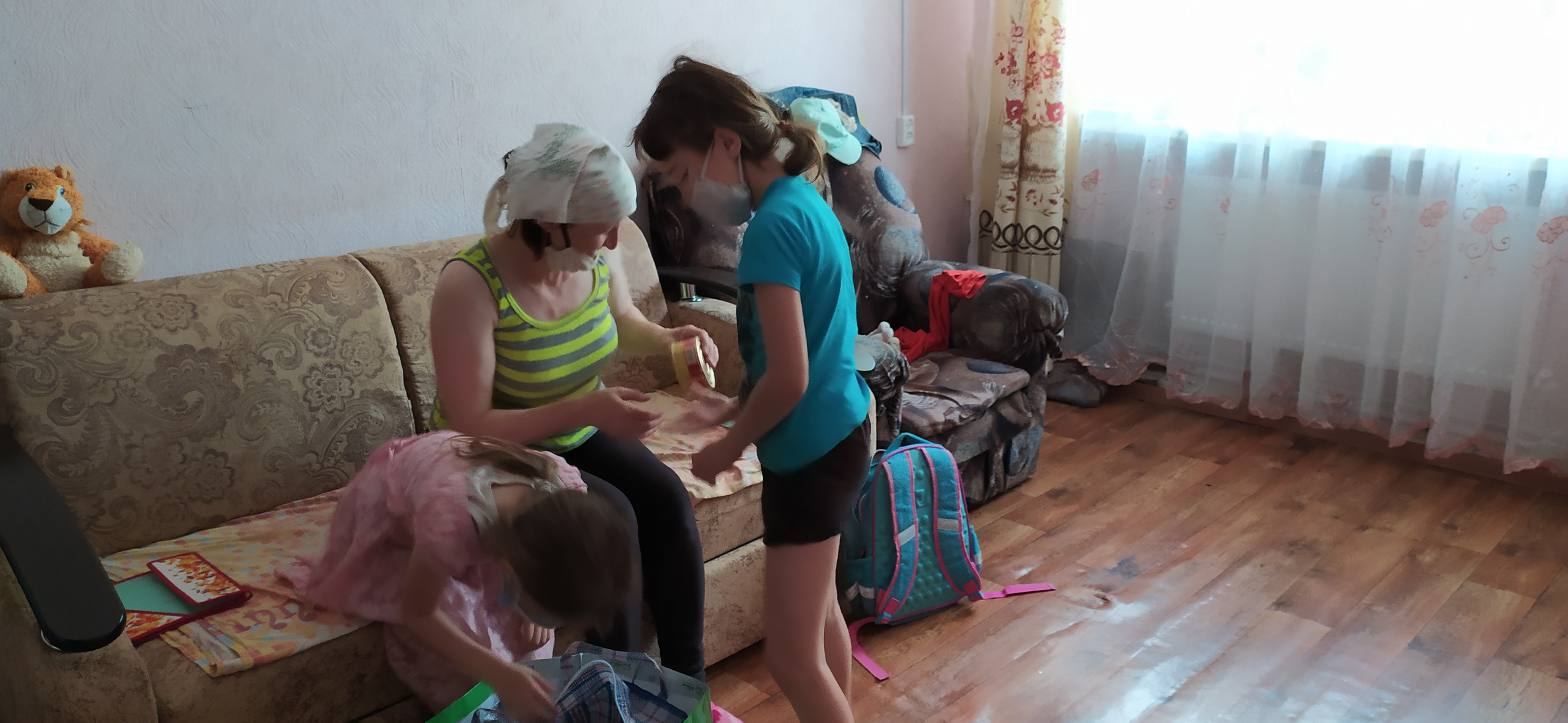 “Әни, майонез да бар, коймак пешерергә он да,-”дия-дия әниләренә күчтәнәчләрне күрсәттеләр.