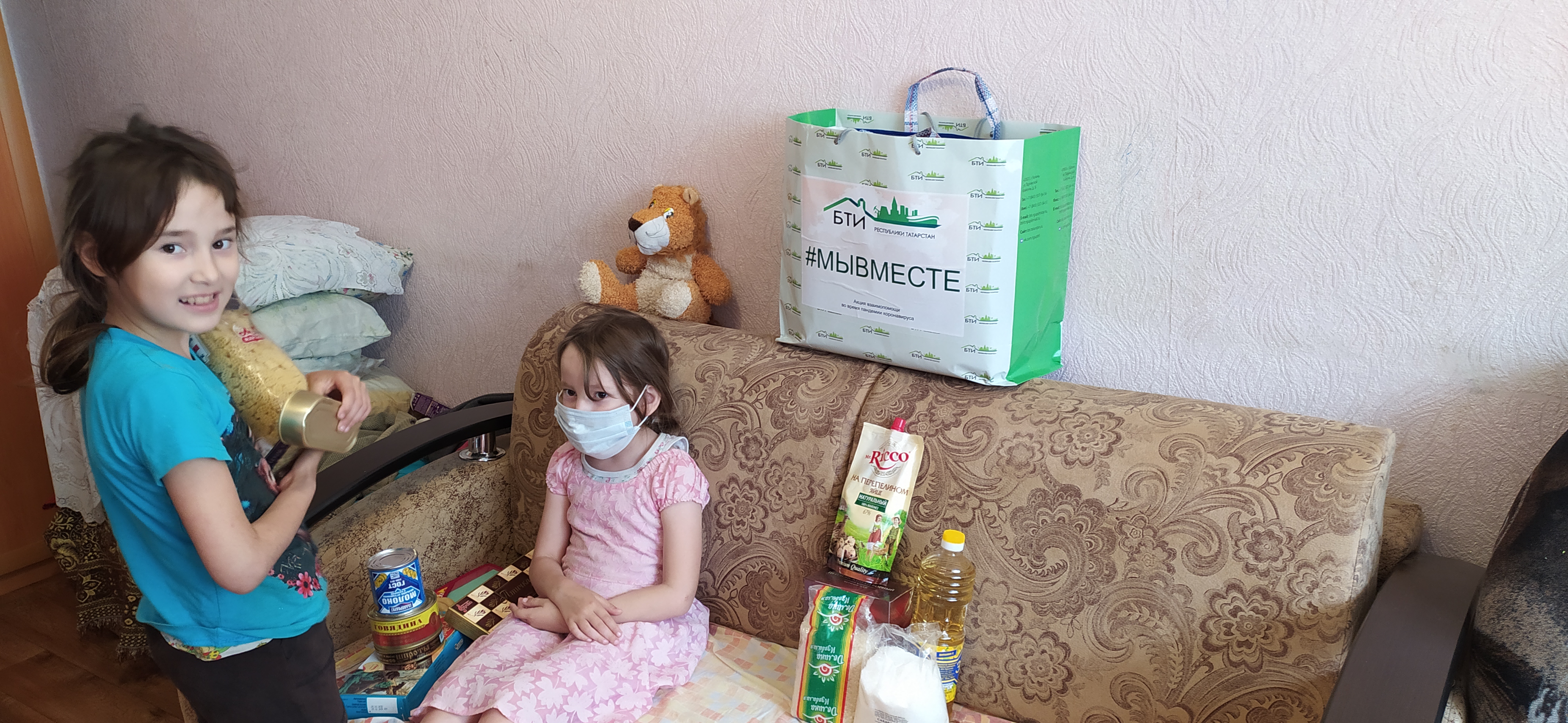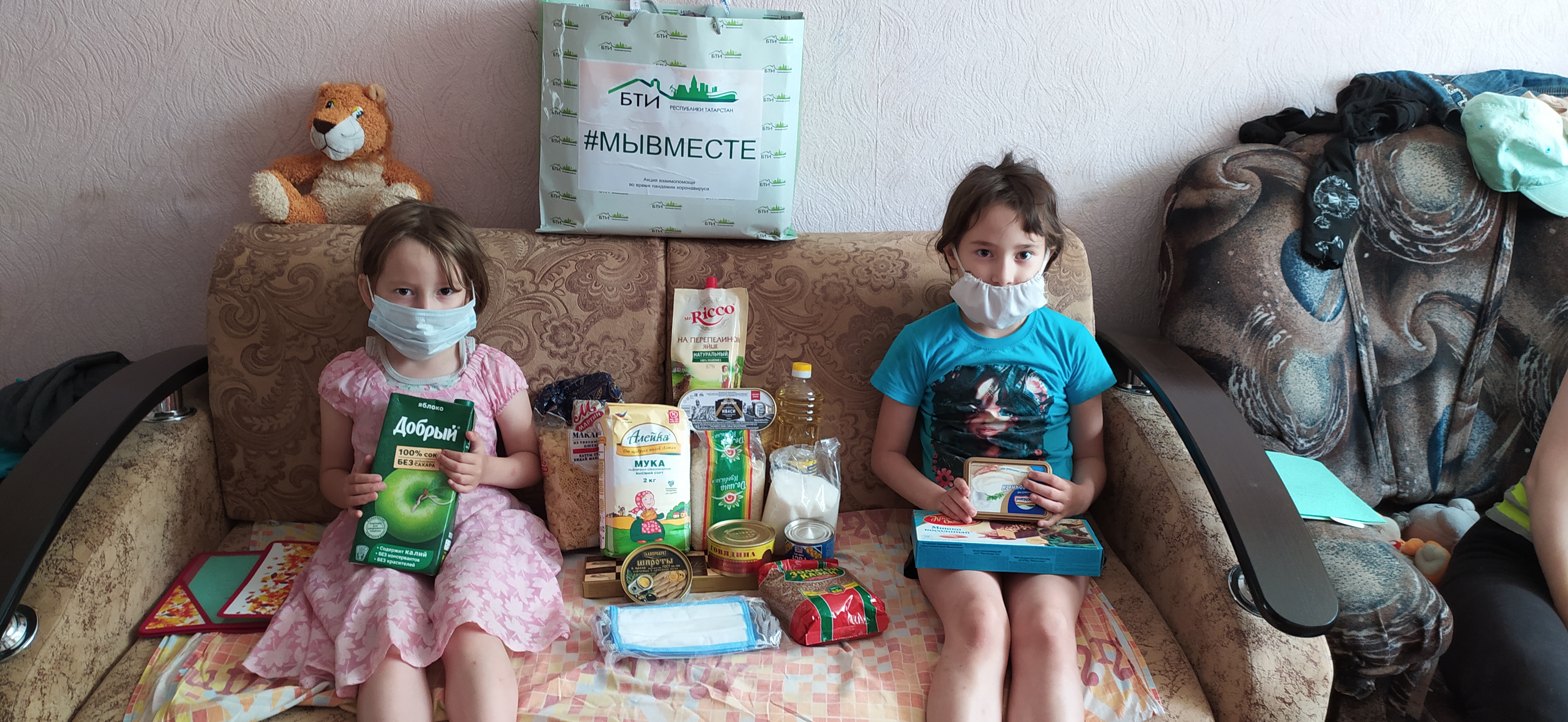 Актаныш районындагы «Техник инвентарьлаштыру бюросы» җитәкчесе Ленар Газизов һәм бюро хезмәткәре Энҗе Тимерова бүген Талиповлар гаиләсе белән очрашты, “Без бергә!” акциясе кысаларында азык-төлек җыелмасы тапшырдылар.