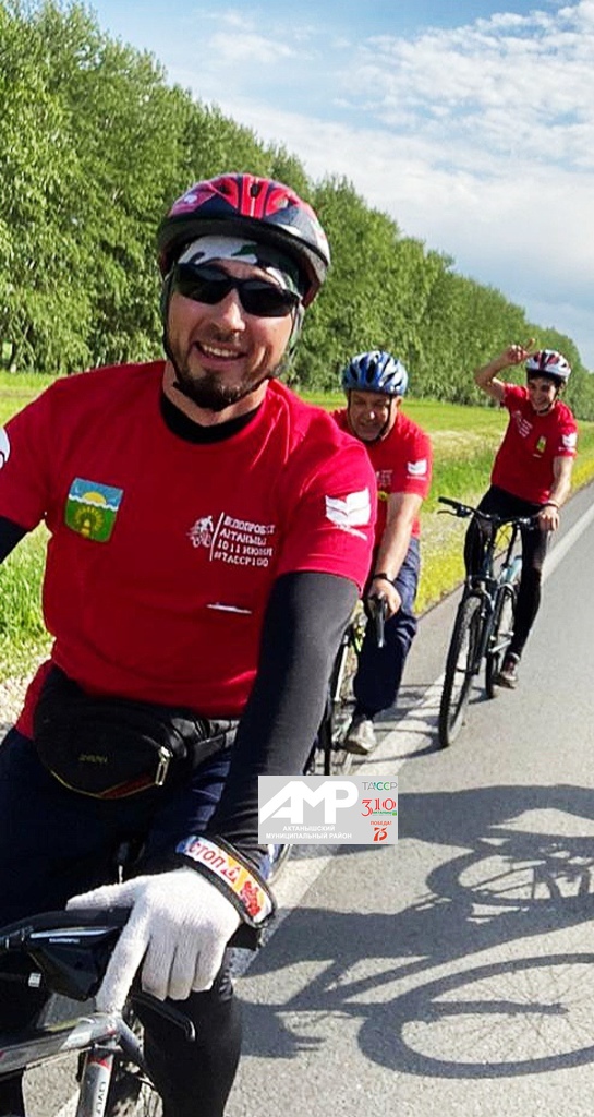 ТАССРның 100 еллыгы әләмен дә Актаныш җиренә беренчеләрдән булып велосипедчылар каршы алды.