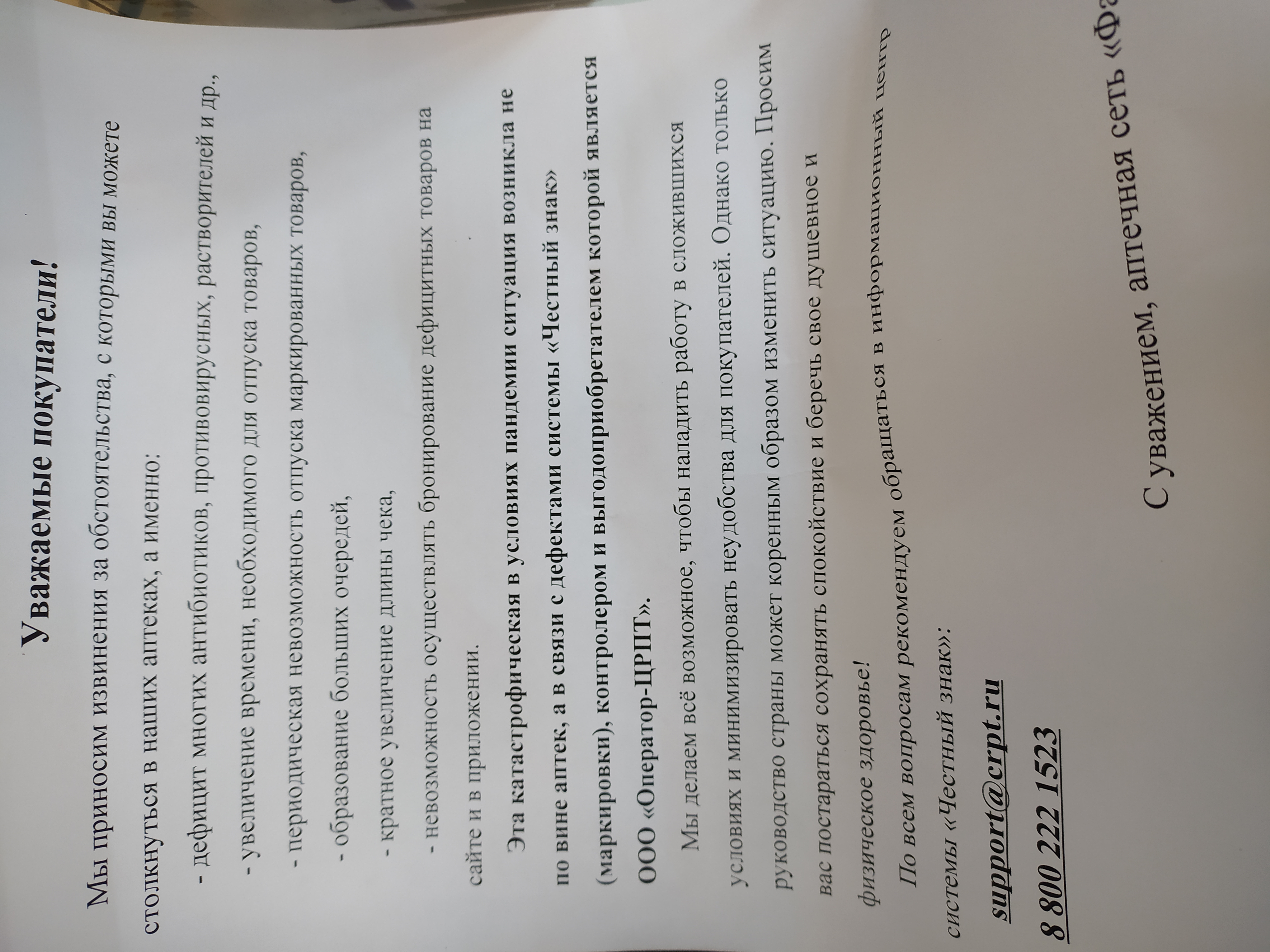 Пандемия шартларында кирәкле даруларның булмавында даруханәнең гаебе юк. Бөтен хикмәт “Честный знак”-“Гаделлек билгесе” (маркировка) системасындагы төгәлсезлектә. Даруханә мөдире Ләйсән Рзаева “Сатып алучы сораган препарат даруханәдә бар, әмма без аны касса аша үткәрә алмыйбыз (күз алдына китерегез: дару төргәгендәге штрих-код укылмый). Менә шушы маркировка үткәрә алмау аркасында кирәкле даруны сатып булмый”,- ди.