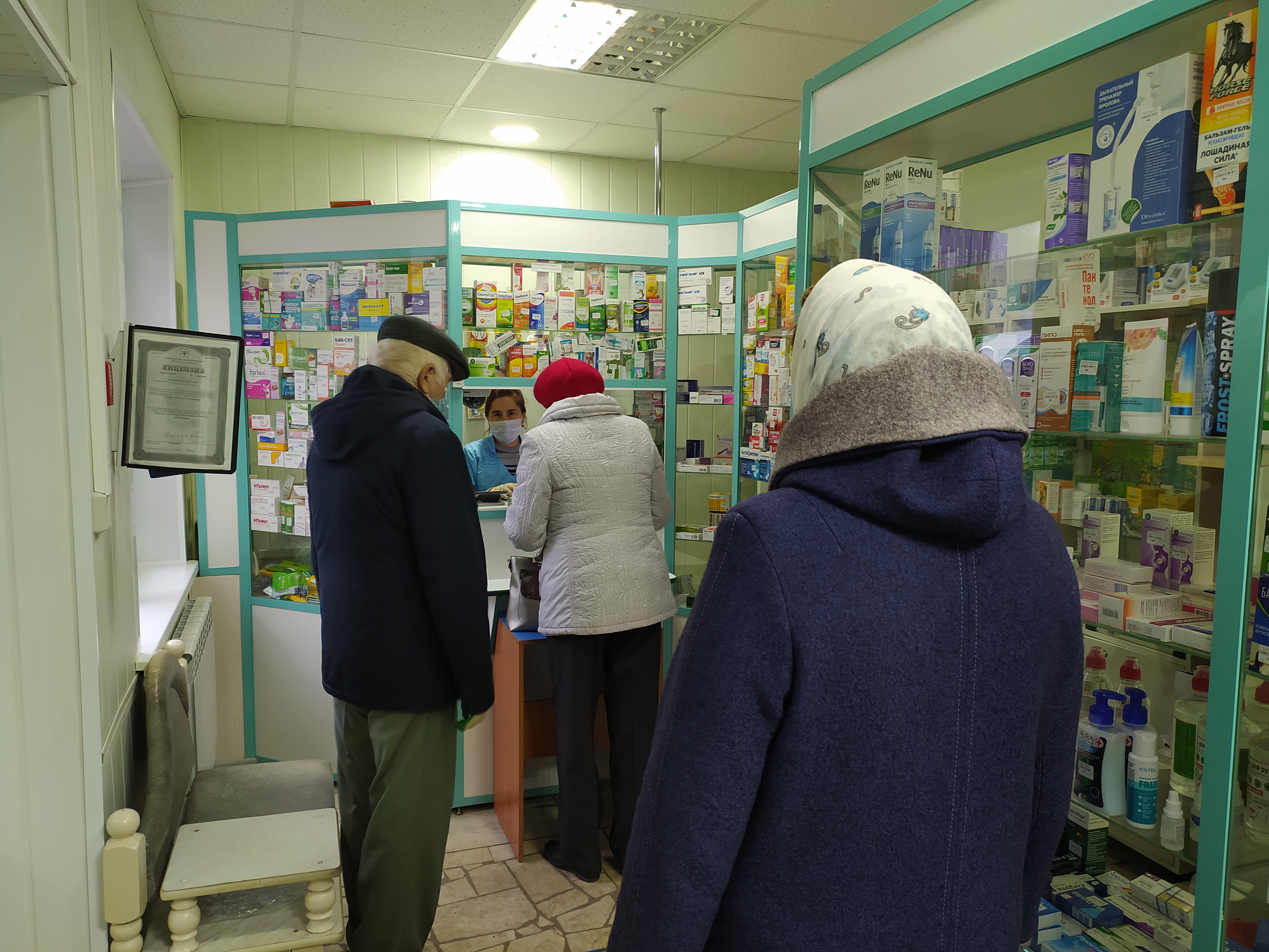 Чират торучылар белән бергәләп көттек даруханәчеләрне. Дәүләт аптекасыннан беркайчан да кеше өзелми, чөнки социаль пакет җыелмасына кергән дарулар шушында гына бирелә. Халык битлектән, бер-берсеннән ара калдырып басканнар.