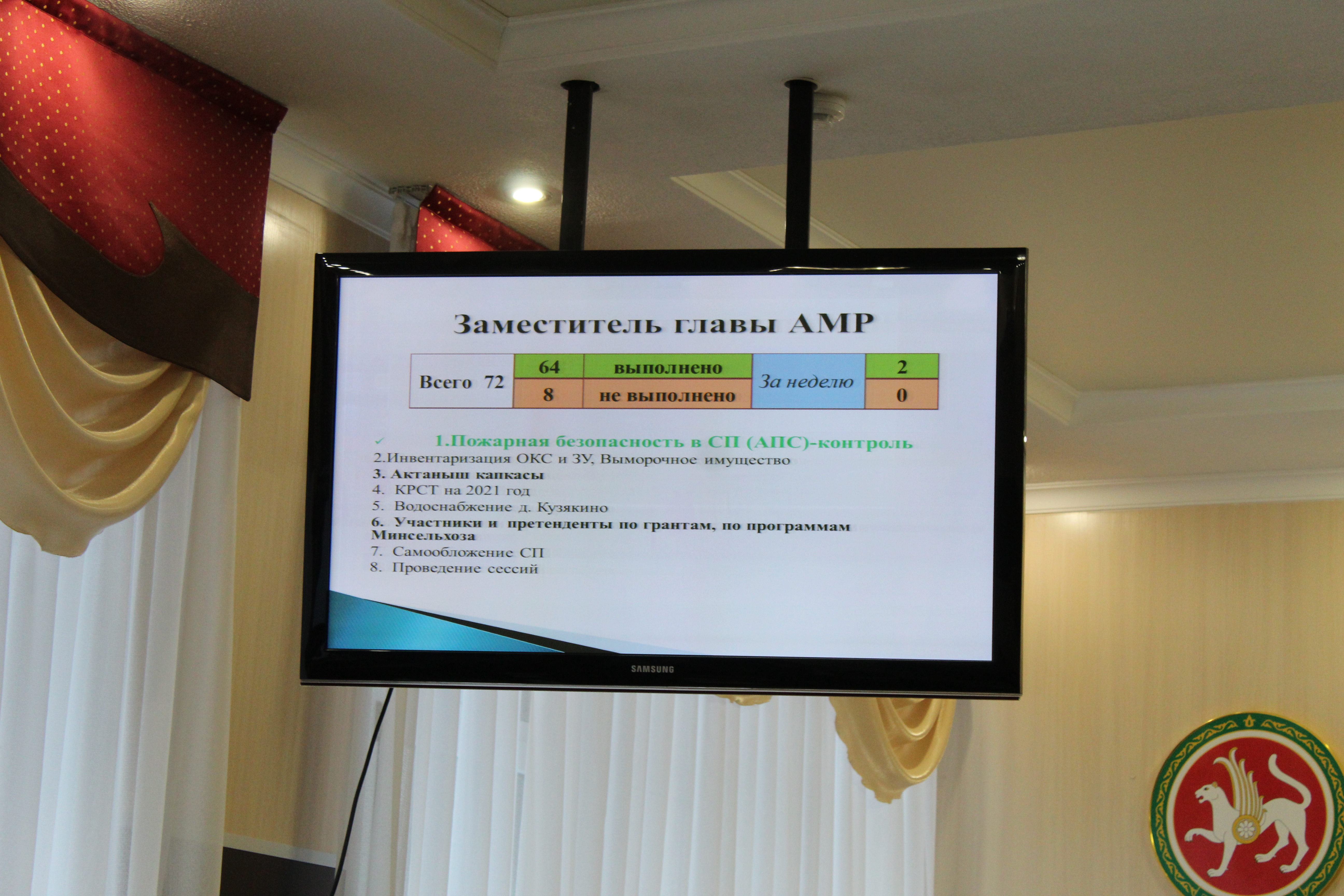 Район Советының оештыру эшләре бүлеге мөдире Миләүшә Гыйлаева район Советы рәисе урынбасары, район башкарма комитеты җитәкчесе һәм аның урынбасарлары эшчәнлегенә анализ ясады, атна эчендә план нигезендә үтәлгән, яисә үтәлмәгән бурычлар ачыкланды.