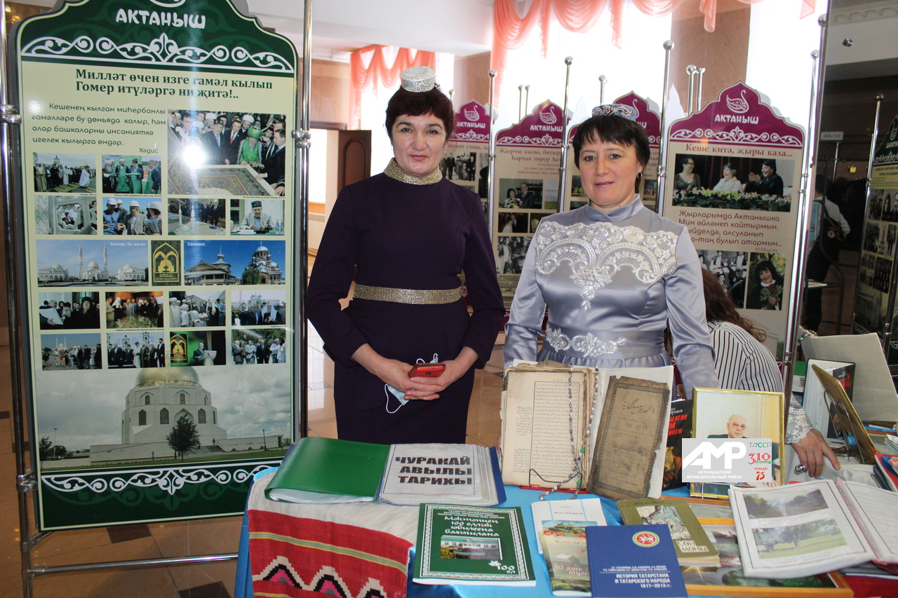 Актанышта гамәлләштерелгән төбәкара фәнни-гамәли конференция кунакларын Әлфия Авзалова исемендәге район мәдәният йорты фойесы тарихи-мәдәни мирасыбызны чагылдырган күргәзмә белән каршы алды.