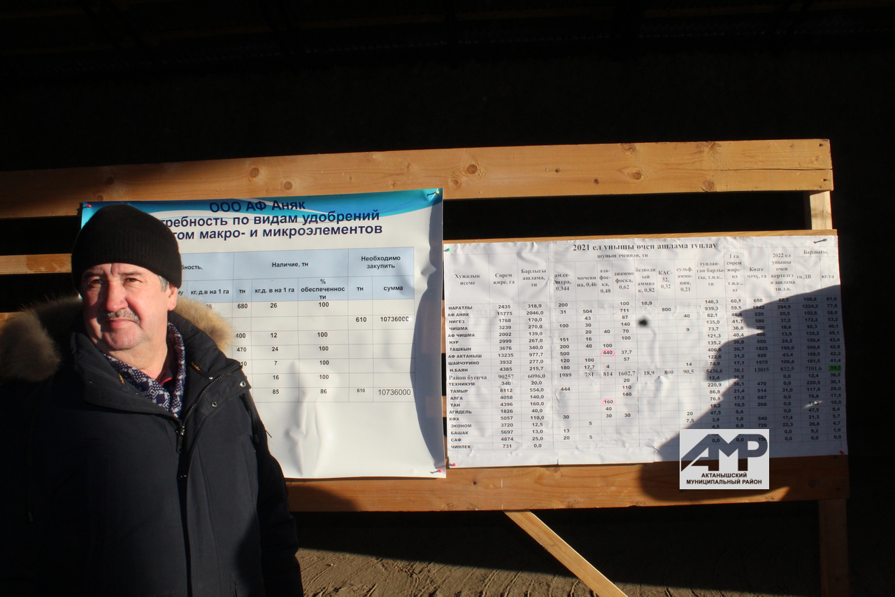Быел Актаныш районы бер гектарга 85 килограмм тәэсир итү көчендә булган ашлама кертүне максат итеп куя. Әле туплыйсы да туплыйсы дигән сүз бу. Энгель Нәвап улы инде 10 мартка, тәэсир көче белән исәпләгәндә, чәчү җирләренеӊ һәр гектарына 40 килограмм ашлама тупланган булырга тиеш дигән бурыч куйды хуҗалыклар алдына. Бүген инде 26 февраль, ә кагыйдә буларак, санаулы көн бик тиз үтәчәк.