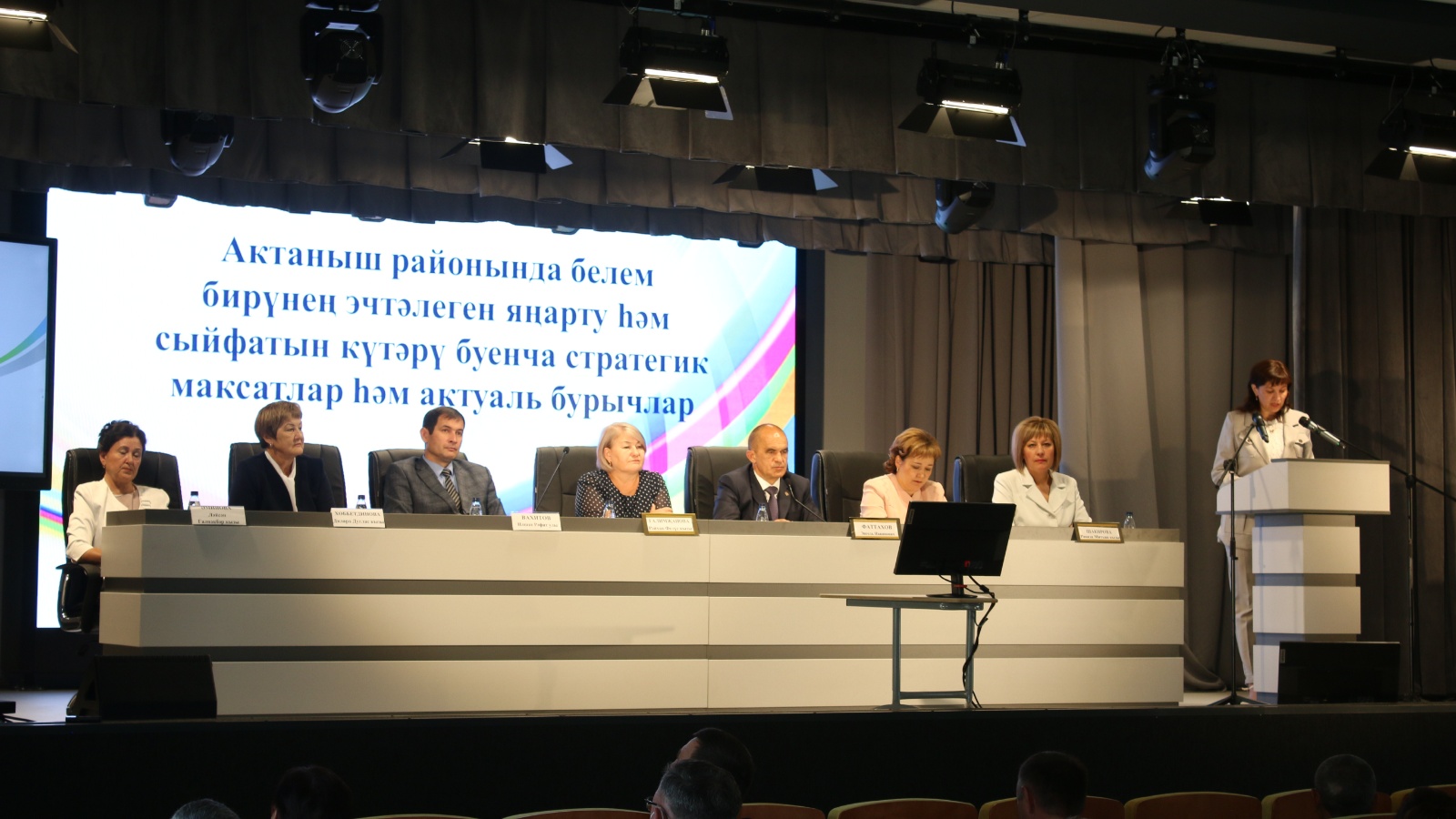Район мәгариф хезмәткәрләренең август киңәшмәсе “Актаныш районында белем бирүнең эчтәлеген яңарту һәм сыйфатын күтәрү буенча стратегик максатлар һәм актуаль бурычлар” шигаре астында узды.
