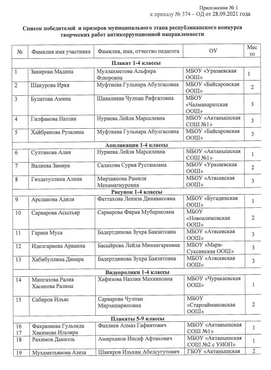 9 декабрь - халыкара коррупциягә каршы көрәш көне уңаеннан, мәктәп укучылары арасында ришвәтчелеккә каршы узган бәйге нәтиҗәләре игълан ителеп, җиңүчеләр хөрмәтләнде. Укучылар рәсем, плакат, апликация, инша һәм эссе номинацияләрендә көч сынады.