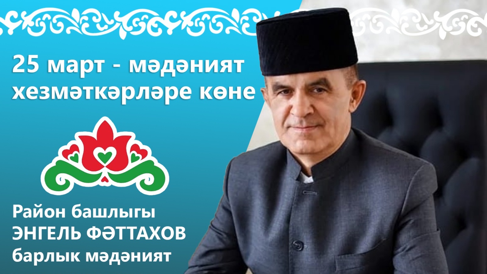 Сезне һөнәри бәйрәмегез - мәдәният хезмәткәрләре көне белән ихлас күңелдән тәбрик итәм!