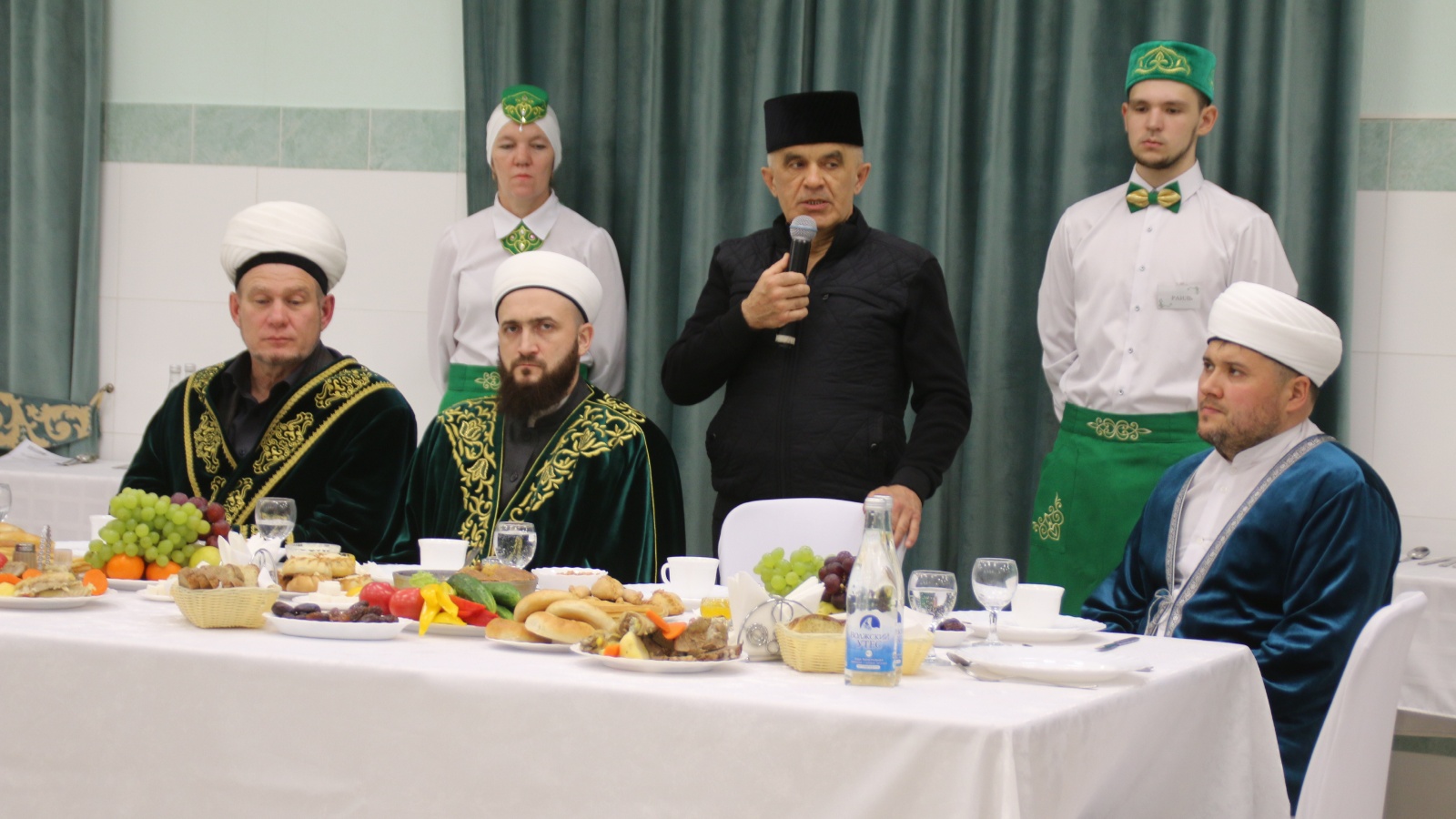 Очрашулар Җәмигъ мәчетендә дәвам итте. Үзәк иман йортына җыелган район халкы Камил хәзрәтнең вәгазьләрен тыңлады, бергәләп намаз укыдылар. Аннан кунаклар, район башлыгы Энгель Фәттахов тарафыннан, җитәкчеләр өчен оештырылган ифтар ашында катнашты. Ифтар ашлары һәр җирлектә зурлап оештырыла. 25 апрель көнне ифтарның чираттагысы район халкы өчен "Батыр" спорт комплесында узачак.