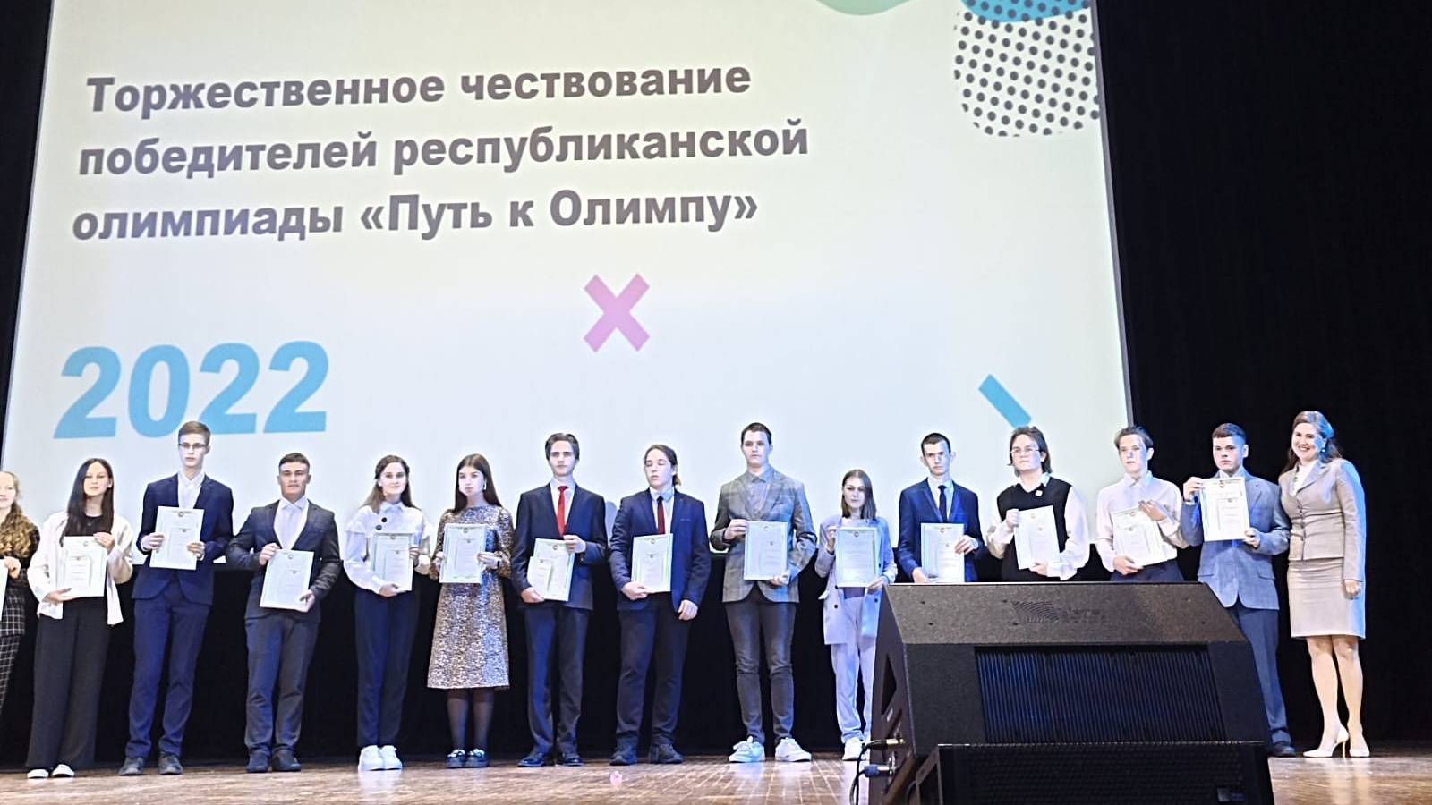 Бүген Казан шәһәрендә Бөтенроссия, республика олимпиадаларында урын алган укучыларны һәм аларны әзерләгән укытучыларны хөрмәтләү тантанасы булды. Анда "Сәләтле балалар өчен гуманитар гимназия-интернаты укучылары: дөньяви мәдәният һәм сәнгать фәне буенча Бөтенроссия олимпиадасының призеры Камильянова Динара, укытучысы Абдуллина М.М., Татарстан тарихы фәне буенча республика олимпиадасы җиңүчесе Нурлыев Динислам, укытучысы Гилметдинов М.И., химия фәне буенча "Олимпка юл" республика олимпиадасы җиңүчесе Анамов Әмирсалих, укытучысы Гарипова Р.И., кадет-интернат мәктәпләре арасында рус теле фәне буенча "Ватанга хезмәт итәм!" республика олимпиадасы җиңүчесе Зименков Никита, укытучысы Амирзянова Э. М. катнашты.