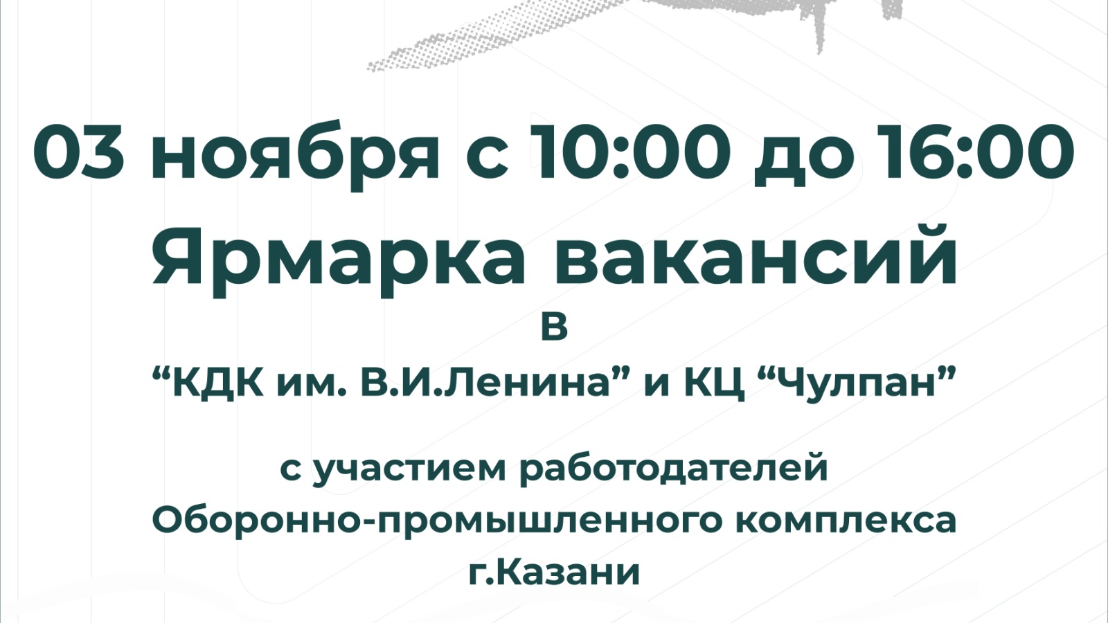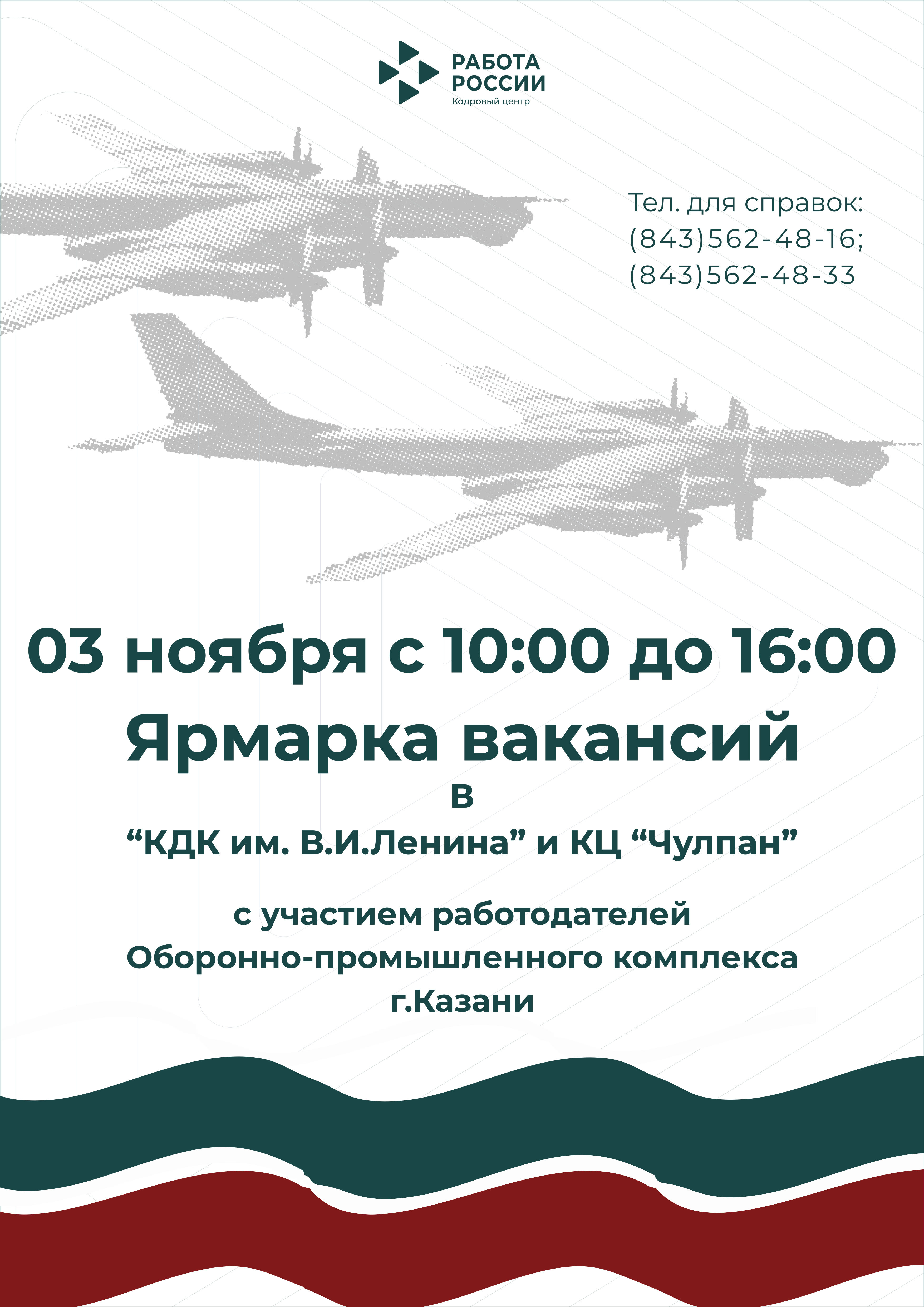 Вакантлы эш урыннары ярминкәсен берьюлы ике мәйданчыкта үткәрү планлаштырыла: Казан шәһәре МБУК «КДК ис. В.и Ленин» (Копылов ур., 2а) һәм «Чулпан» КҮҮ (Җиңү проспекты, 48а)..jpg)