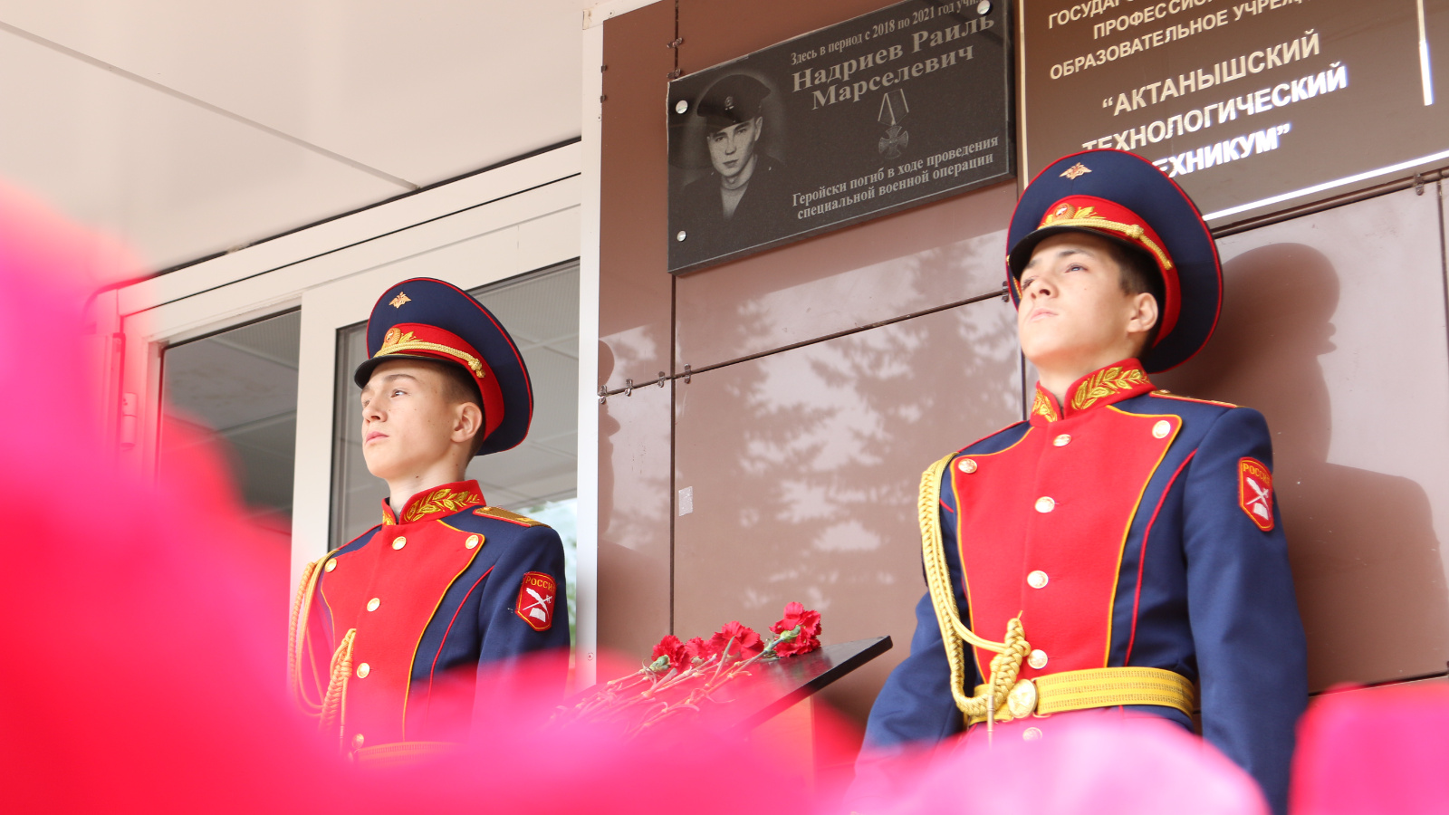 Бүген Технологик техникумда, махсус хәрби операция барышында батырларча һаләк булган иң яшь райондашыбыз - Надриев Раил Марсель улына истәлек тактасы куелды.