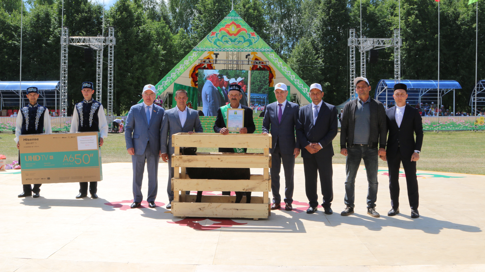 Сабантуй җир кешесен, мул уңышларыбыз өчен үзен аямый, вакыт белән исәпләшми кырда хезмәт куйганнарны хөрмәтләү бәйрәме. Быел да 2023 елның уңышы өчен тырыш хезмәт куйган игенчеләребез, агросәнәгать икътисадының нигезен тәшкил иткән терлекчелек тармагында хезмәт куйган хезмәткәрләр бүләкләнде.