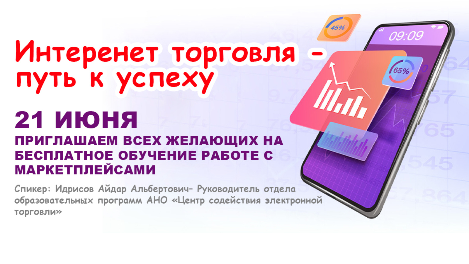 21 июньдә 10: 00 сәгатьтә "Яшьлек" яшьләр үзәгендә маркетплейслар белән эшләү буенча бушка укулар узачак. Спикер: Идрисов Айдар Альберт улы - «Электрон сәүдәгә ярдәм итү Үзәге» АКБО белем бирү программалары бүлеге җитәкчесе.